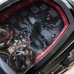 According to Arabo, the watch and movement were more than two years in the making and took more than 3,300 hours and a team of 30 experts to bring the piece to fruition. The case is engine-shaped (in an inverted triangular form) and inspired by a Morgan car that Jacob recently purchased.