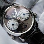 The watch itself hasn’t changed of course. You still get that 14mm oversized balance wheel that seems to hover above the two subdials, one for each time zone. Between them that unique vertical power reserve indicator, telling you exactly how much power the manual wind movement created by Jean-François Mojon and Kari Voutilainen has left.