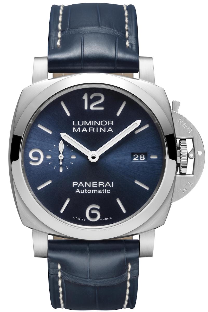 Panerai is celebrating the 70th anniversary of the Luminor this year and does so with the new Luminor Marina Ref.PAM01313. What is so nice about this watch is that it simply takes all the strengths of the model and serves it up straight and simple. For the very first time, it features its signature sandwich dial in blue with a sun-brushed pattern. Further, you get the hallmark safety lock for the crown, its distinct 44mm case in stainless steel, and a water resistance of 300 meters. It is powered by caliber P.9010, which offers a three-day power reserve thanks to two mainspring barrels. A nice touch is also that Panerai delivers the watch with two straps; one in blue alligator leather for when you intend to remain on dry land, and a blue rubber one as well, for when things might get wet. This makes the new Luminor Marina perfect to enjoy summer with.