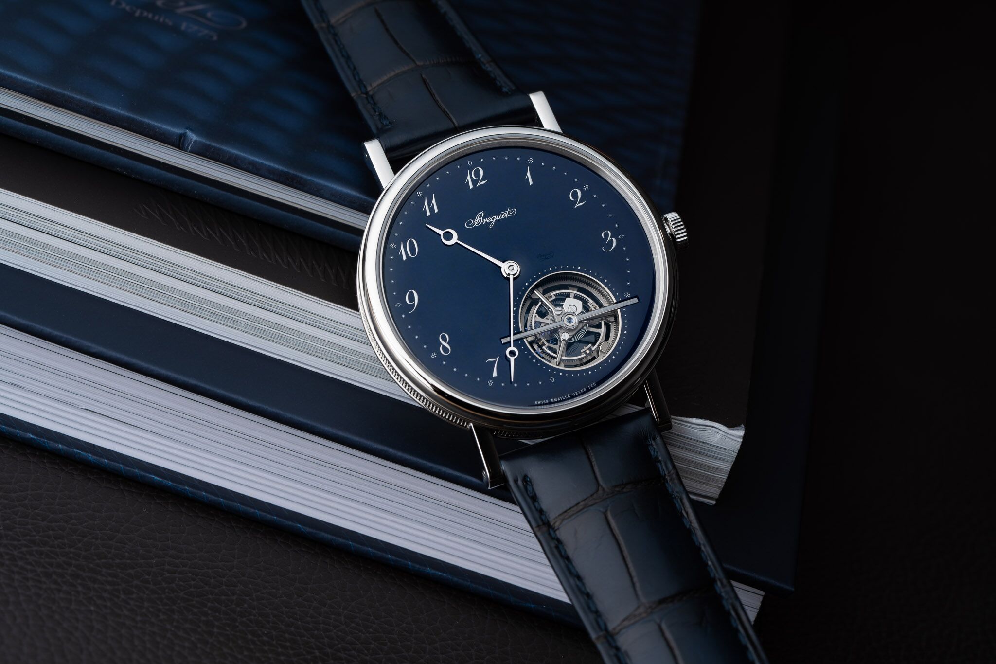 With the Classique Tourbillon Extra-Plat Ref.5367 shows Breguet us how a modern-looking watch can be created through old-school craftsmanship. It is primarily the combination of the platinum case with the blue dial in Grand Feu enamel that achieves this, but also the movement packs quite a punch. It measures only 3mm in height, and it is fitted with a peripheral oscillating weight, silicon escapement, and balance spring, and offers a very generous power reserve of 80 hours. This is quite an achievement in such a thin movement. Of course, does the movement also feature a tourbillon, a signature complication as Breguet was the brand that invented it. With an overall height of just 7.45mm is this Breguet a tribute to the past, yet also a testimony that ultra-thin watches have a solid footing in the future.