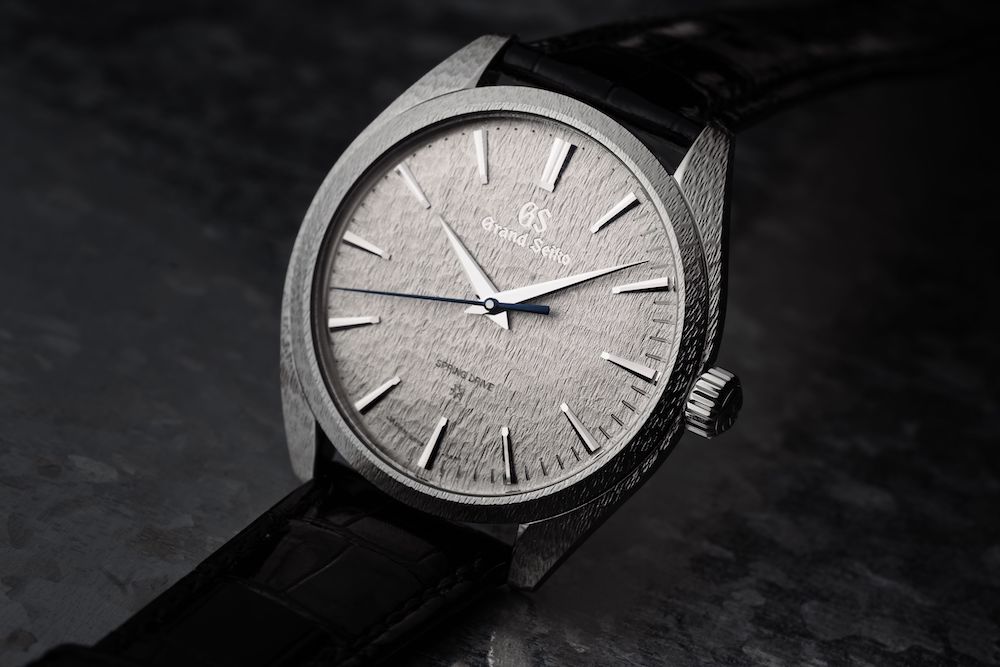 The pattern on the dial is inspired by the snow that falls in the Japanese Shinshu region. It not only gives the watch a unique appearance, but just like with real snow, is there also a subtle yet mesmerizing play of light. This pattern is also hammered by hand in the platinum case at the Micro Artist Studio. This changes the platinum’s appearance completely, especially in relation to what we are typically used to. While a lot of time and effort has been invested in the decoration of this watch, function doesn’t follow form. Both the hour markers, as well as the hands, are polished to perfection for excellent legibility, while a blued seconds hand adds a dash of color.