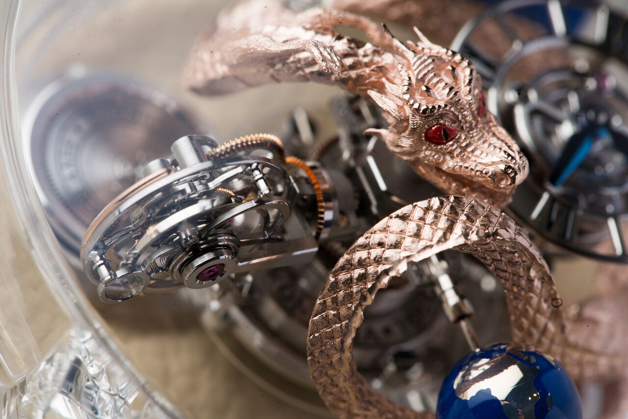 The Astronomia Dragon combines the sapphire case of the Flawless with a dragon that curves between the complications. This micro sculpture shows incredible details, making the watch a true piece of horological art.