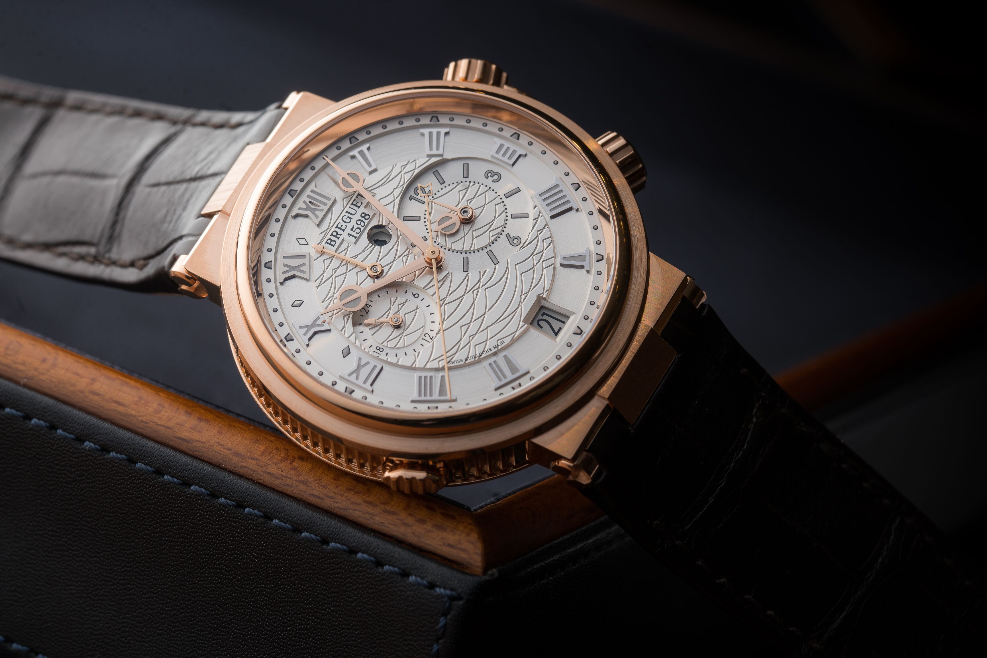 Breguet expanded their Marine collectsion with three new models. While they are all impressive, we were especially taken by the Marine Alarme Musicale 5547. It comes in a titanium case with sunburst slate grey dial, in 18-carat white gold with a blue dial, or like the one here in 18-carat rose gold with silvered dial. Fitted with caliber 519F/1, it combines a second time-zone with an alarm function. As this is a Breguet, the striking mechanism is rather sophisticated and sounds like a ship’s bell, making it all the more appropriate for this watch.