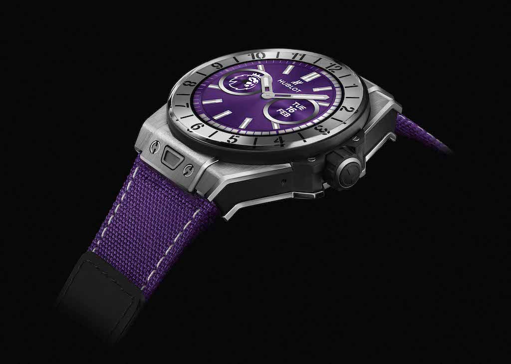 Luxury Swiss watch brand Hublot has released a new limited edition Premier League version of their Big Bang e connected watch. This new watch was created in partnership with the Premier League and is an evolution of the Big Bang with a new football dedicated application, new dial, new strap, and in purple, the official Premier League color.