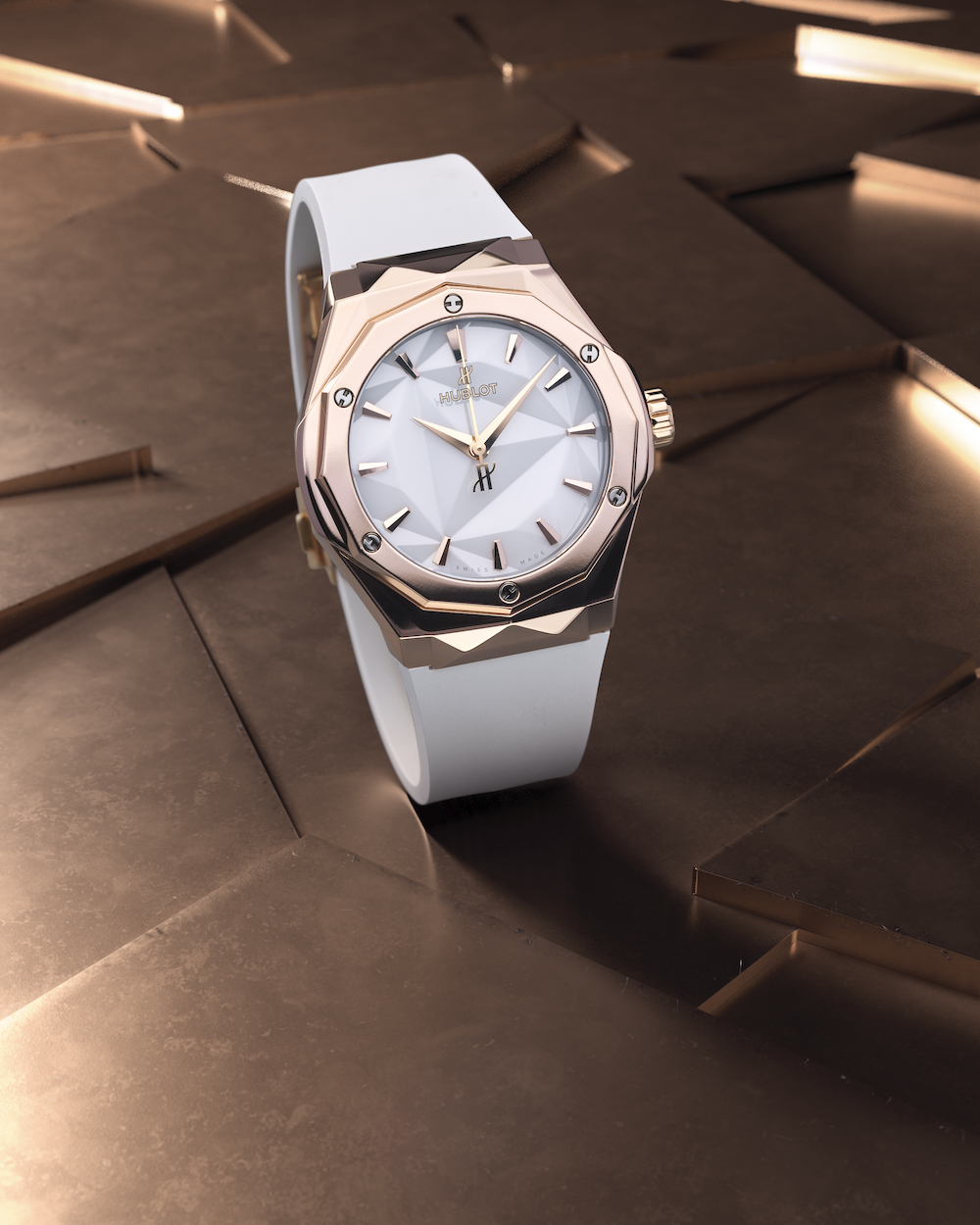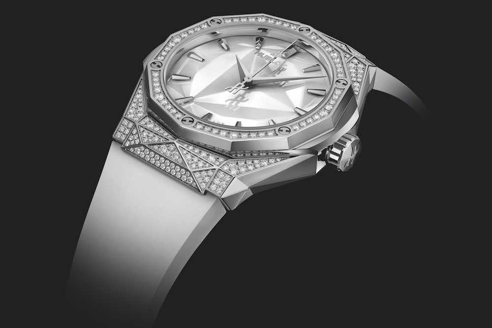 The Classic Fusion Orlinski White is available in six different varieties. Three of them are made from King Gold, Hublot’s proprietary alloy of this precious metal, which has a warmer tone than regular red gold. The other three from titanium, which Hublot polishes to perfection. Orlinski redesigned the case of the Classic Fusion to match the dial. This can be enjoyed with or without a diamond-setting. Without any diamonds, the watch has a sportive look to it, in which the design of the case almost seamlessly transitions into the dial. On the partially set version of the Classic Fusion Orlinski White are the diamonds set in an asymmetrical way. This further amplifies the different angles that make this watch so unique. The Classic Fusion Orlinski White is also available with a pave-setting, featuring 264 brilliant-cut diamonds, for a spectacular effect, making it no surprise why the partnership between Hublot and Orlinski is so successful.