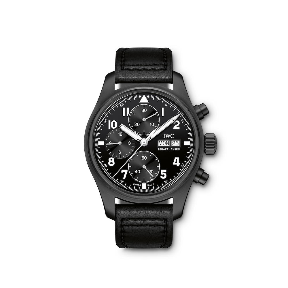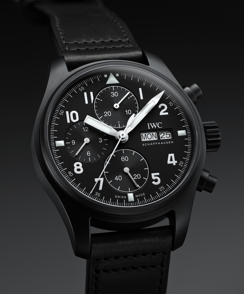 IWC is now launching a limited edition, the Pilot’s Watch Chronograph Edition “Tribute to 3705,” that brings this historic watch back to life. Limited to 1,000 pieces does it closely resemble its predecessor, yet there are a few important differences. Where the original watch used zirconium oxide ceramic for its case, has its successor one made from Ceratanium. This material was developed by IWC and has a base made from a special titanium alloy, which will be put in a furnace for a firing process after being machined. There the surface of the material transforms into one with properties similar to ceramic. Also the chronograph pushers and pin buckle made from this unique material, a first for IWC.