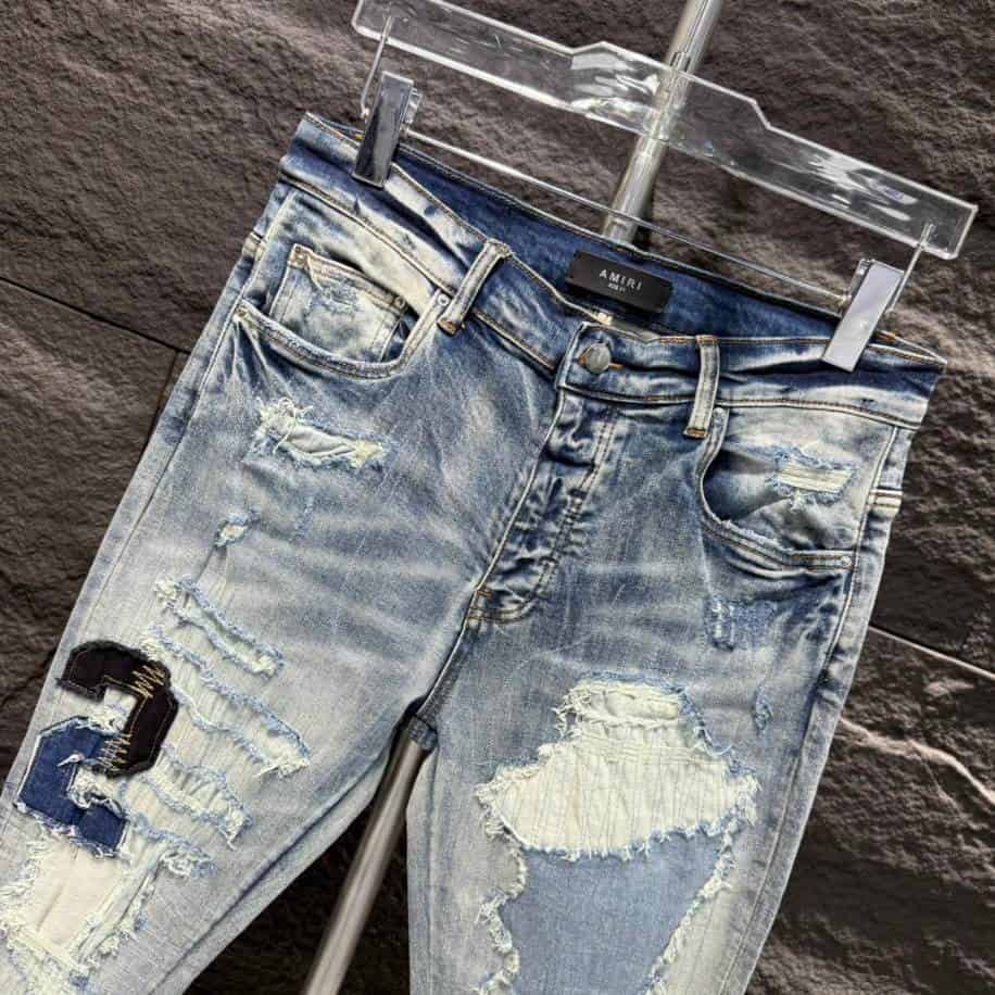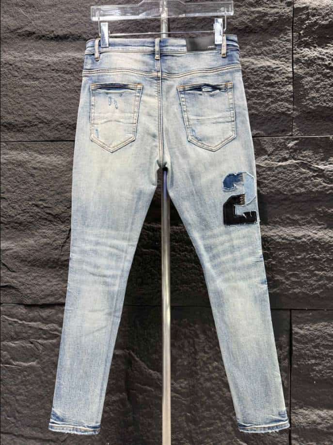 Crafted from durable denim in a versatile blue wash, they mirror the signature aesthetic of Amiri, making them a popular choice for those seeking to emulate luxury streetwear. Perfect for pairing with varsity jackets or graphic tees. These replica jeans blend comfort and trend-forward design at a fraction of the cost of the authentic version.