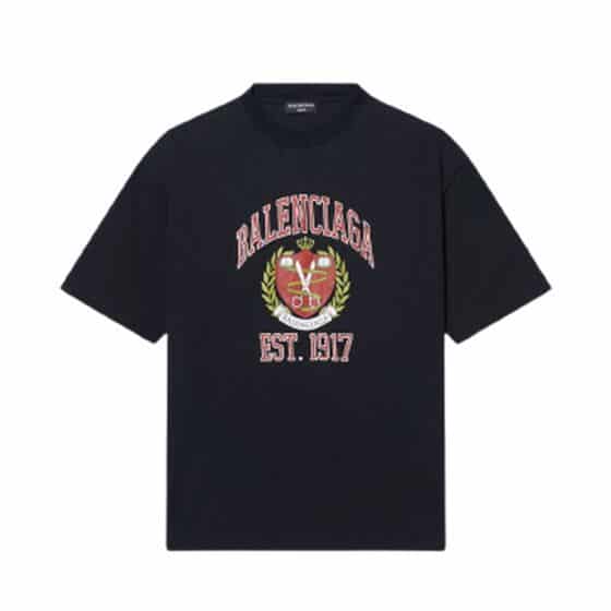 Upgrade your casual look with Balenciaga’s Men’s College T-Shirt in medium fit and sleek black. Embrace timeless style with this versatile wardrobe essential. Shop now for a touch of sophistication!