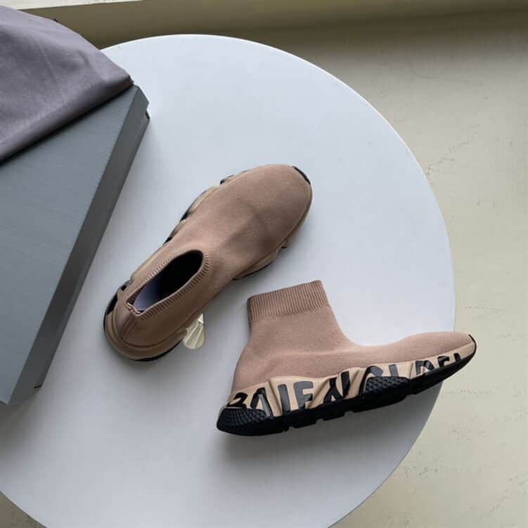 BALENCIAGA SPEED RECYCLED KNIT GRAFFITI SNEAKER IN BEIGE – BLA050