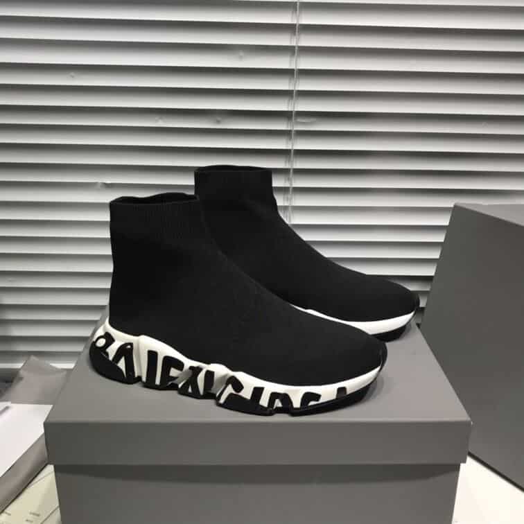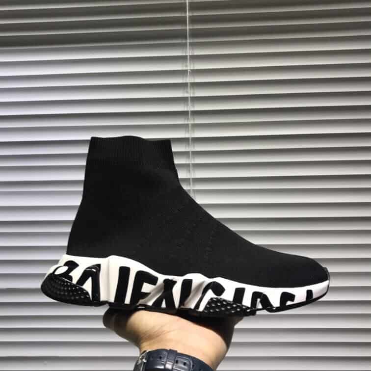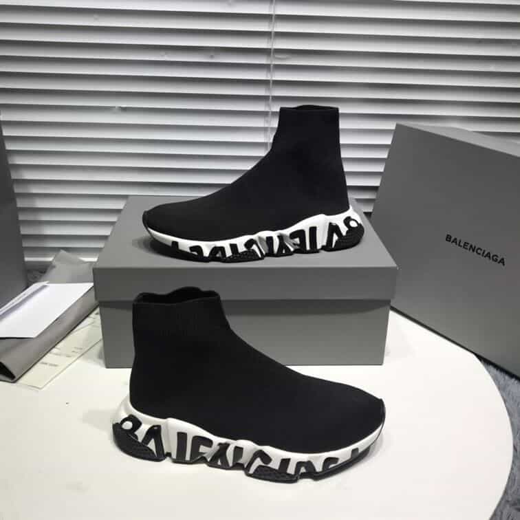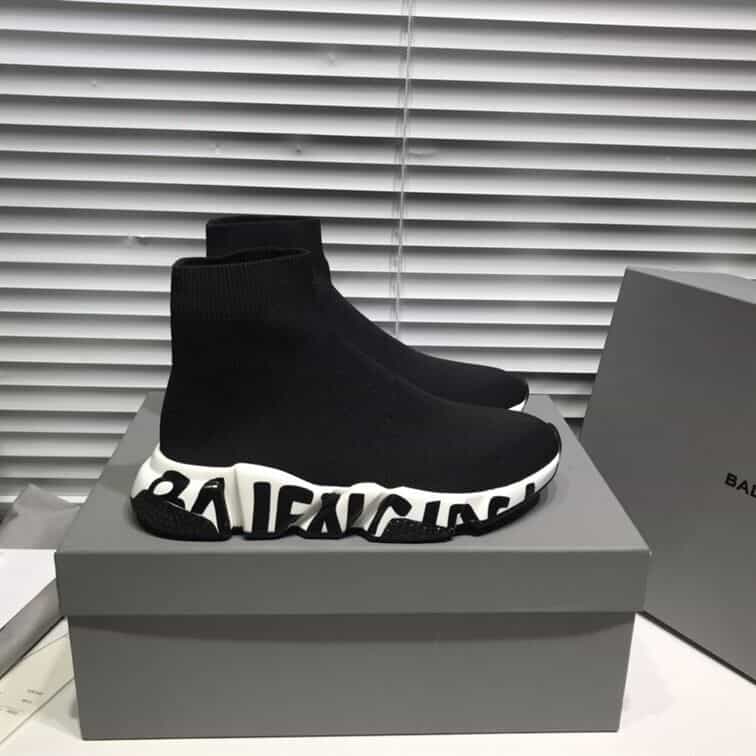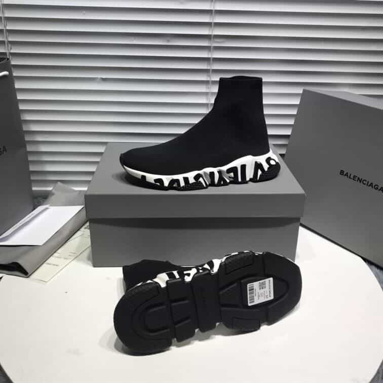 BALENCIAGA SPEED RECYCLED KNIT GRAFFITI SNEAKER IN BLACK/WHITE – BLA051