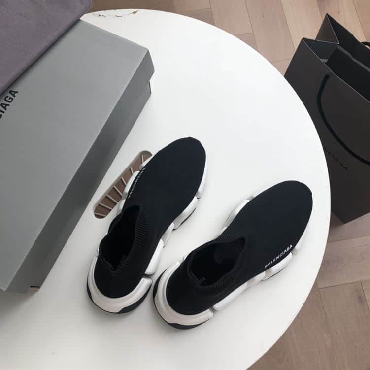 BALENCIAGA SPEED RECYCLED KNIT SNEAKER IN BLACK/WHITE – BLA052