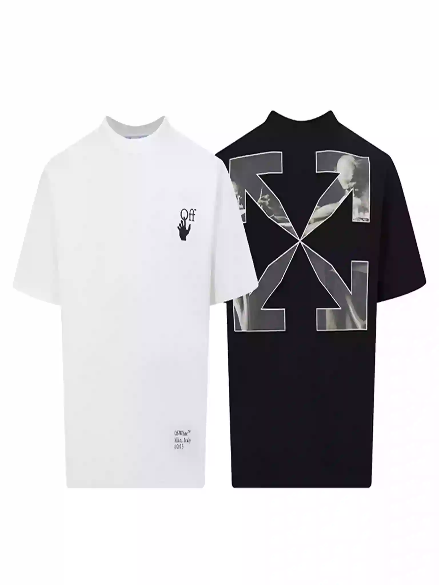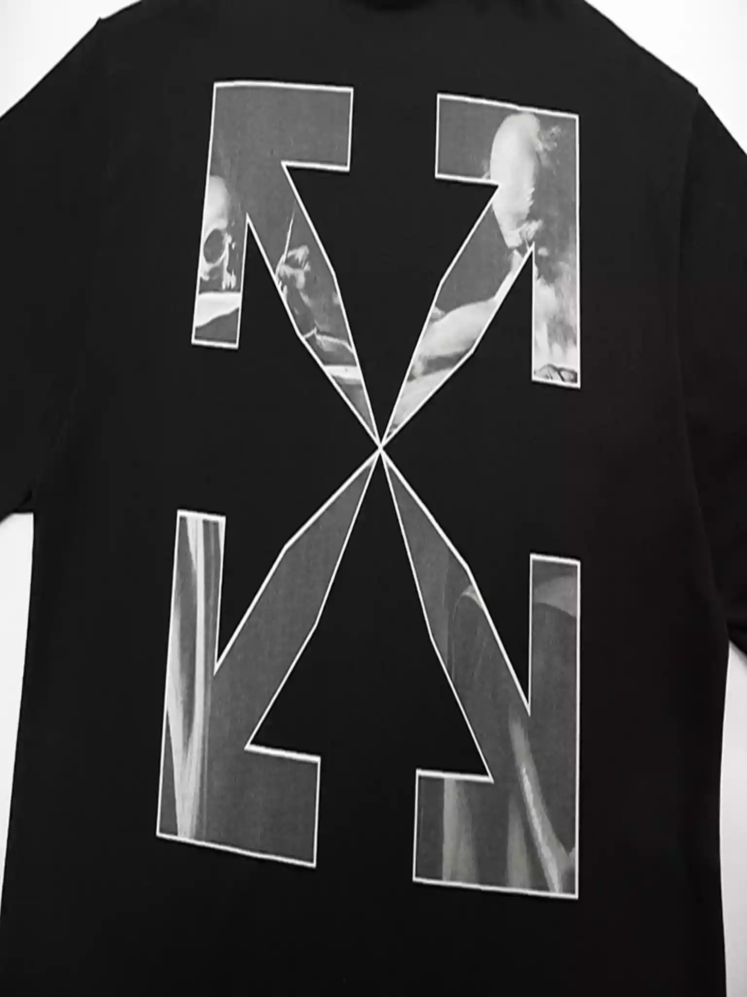 Discover the BLACK CARAVAGGIO PAINTING S/S T-SHIRT – OWS016, a statement piece from Off-White featuring Caravaggio’s iconic artwork reimagined in contemporary streetwear.