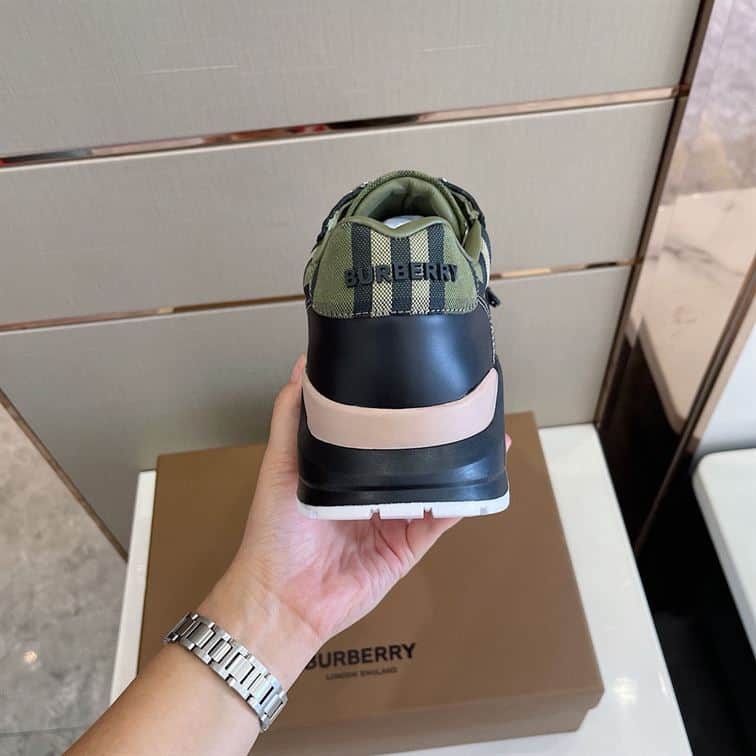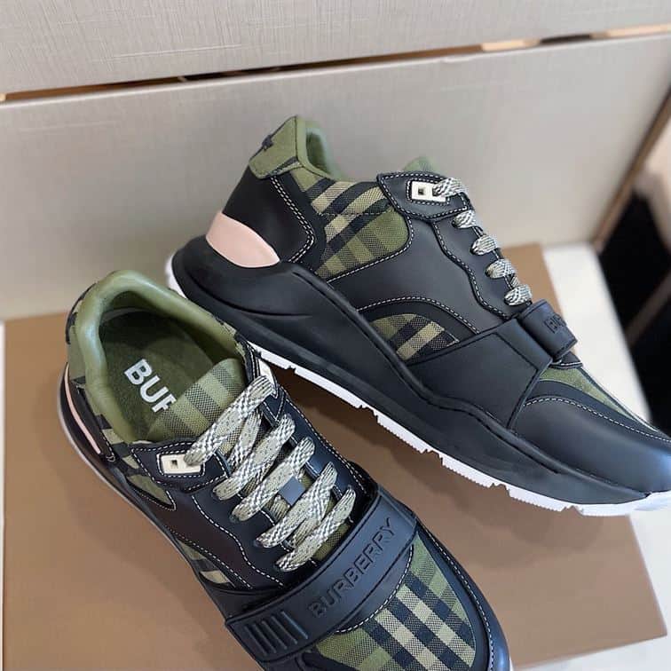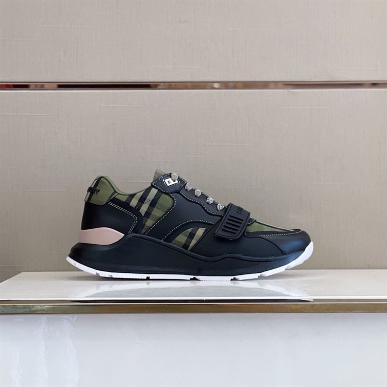 BURBERRY CHECK LACE-UP SNEAKERS IN MILITARY GREEN – BBR008