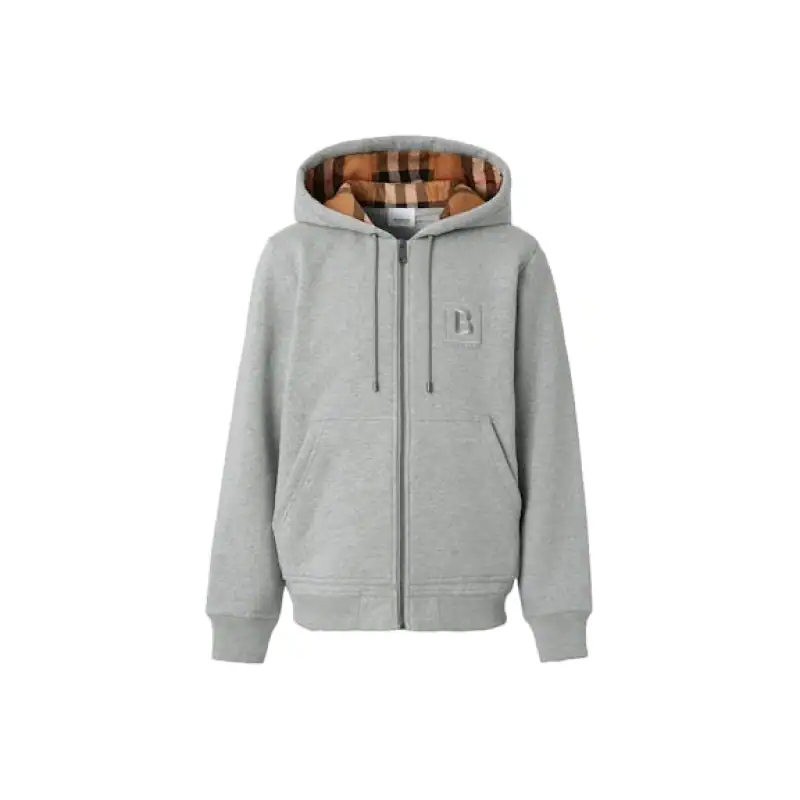 Burberry Letter Graphic Cotton Blend Zip Hoodie Pale Grey Melange ; BCK007
