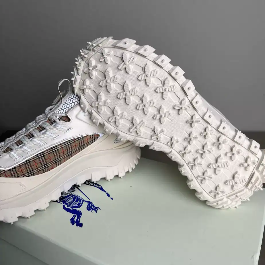 The Burberry Sneaker crafted with meticulous attention to detail and the finest materials, these sneakers seamlessly blend luxury and urban sophistication. With their sleek design and iconic Burberry check pattern, these sneakers are a statement piece for any wardrobe, effortlessly elevating casual ensembles to new heights of refinement.