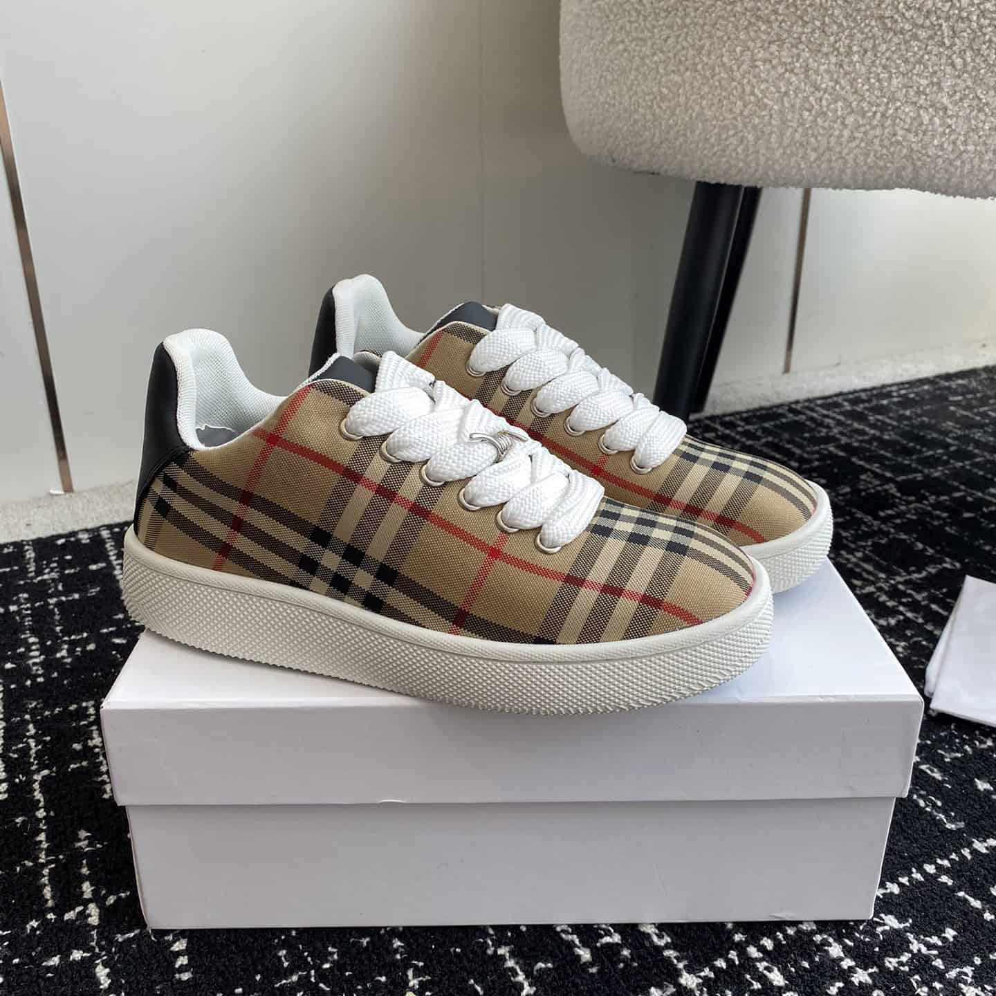 The Burberry Sneaker crafted with meticulous attention to detail and the finest materials, these sneakers seamlessly blend luxury and urban sophistication. With their sleek design and iconic Burberry check pattern, these sneakers are a statement piece for any wardrobe, effortlessly elevating casual ensembles to new heights of refinement.