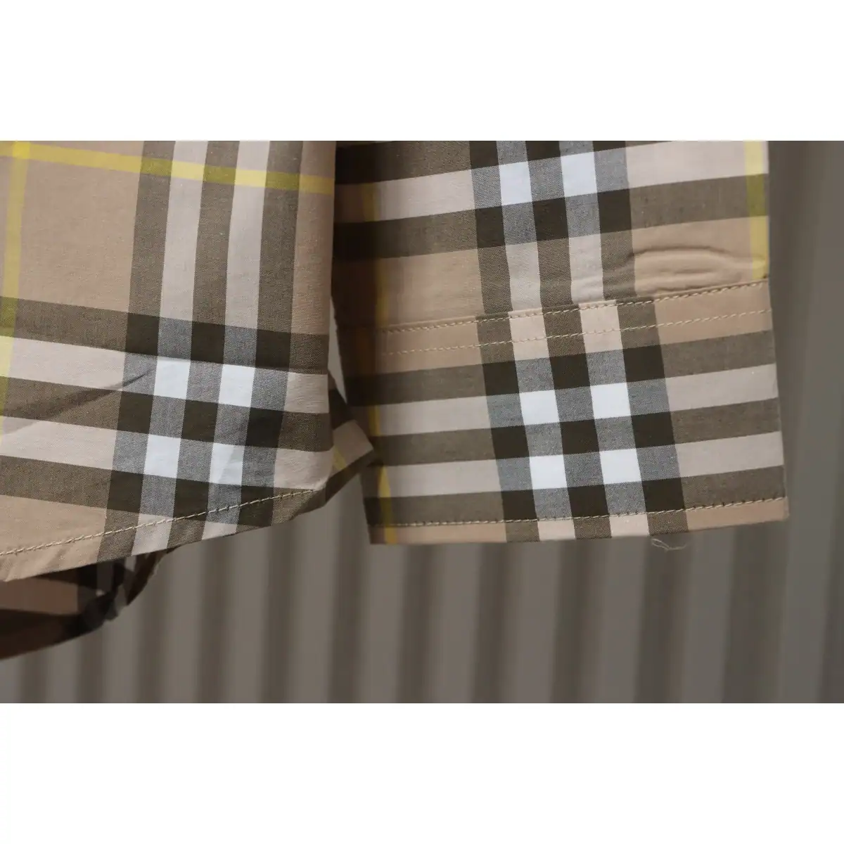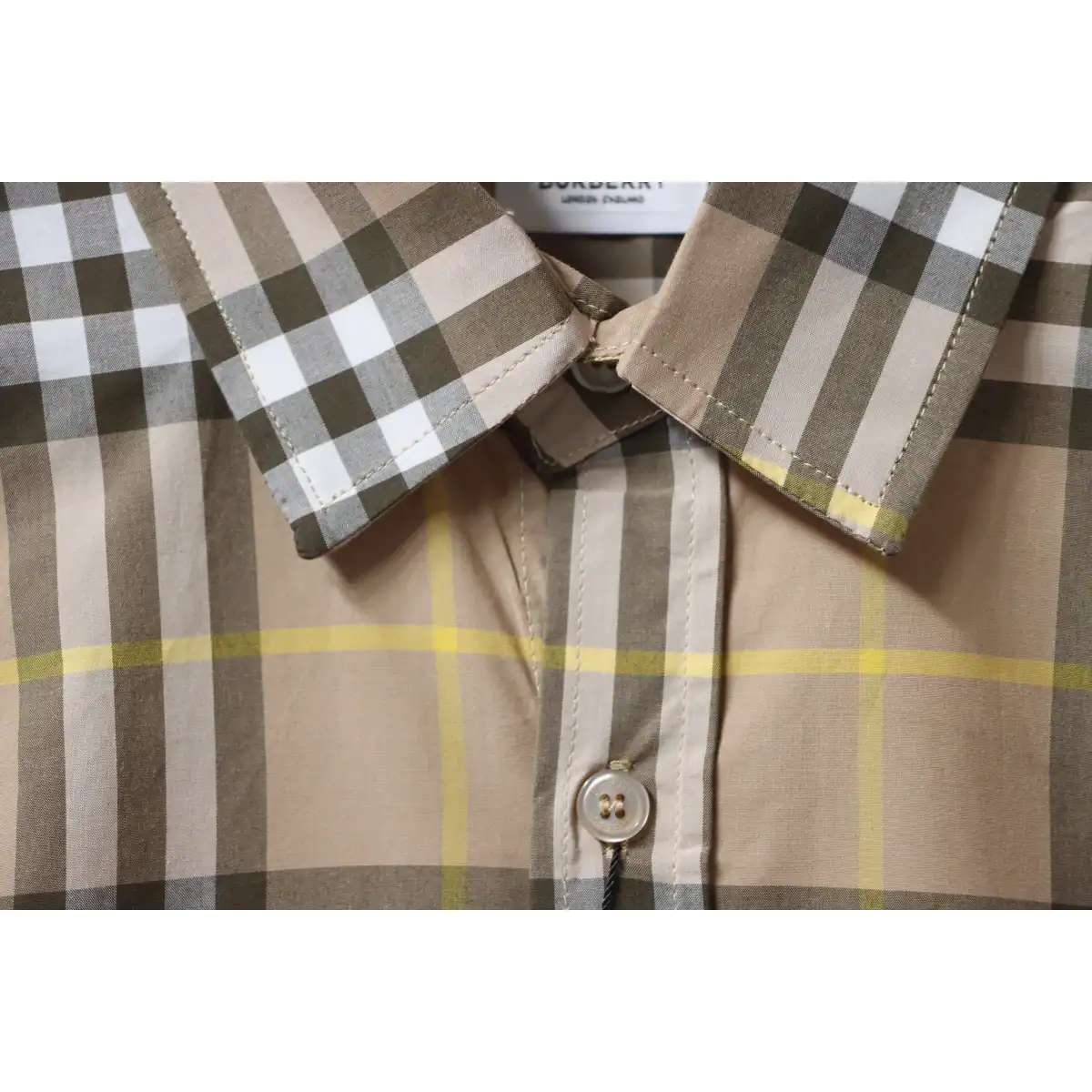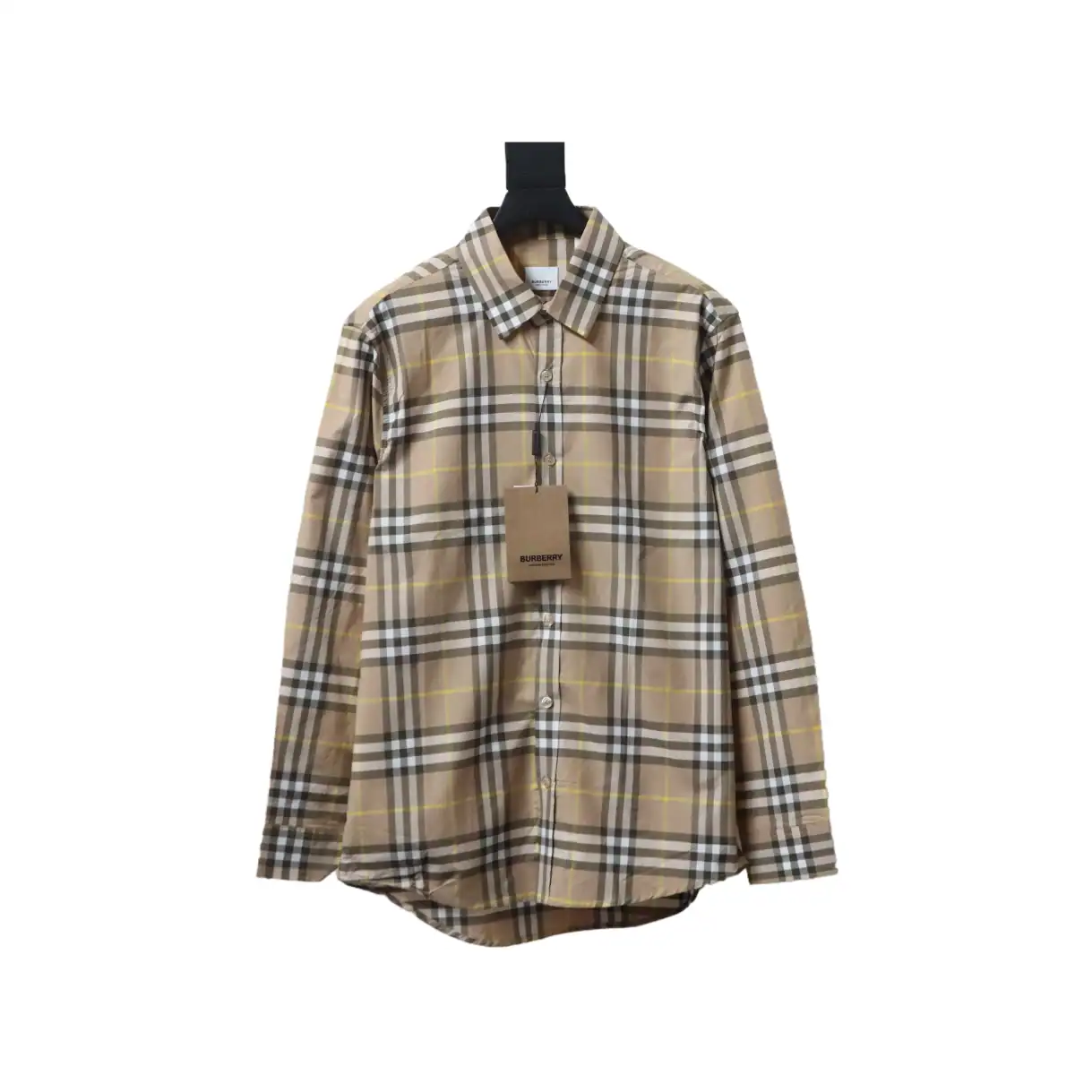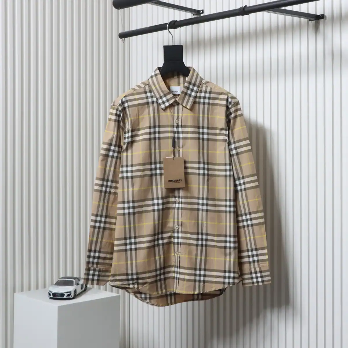 Burberry Tartan Motif Cotton Long Sleeve Shirt Beige ; BRS034