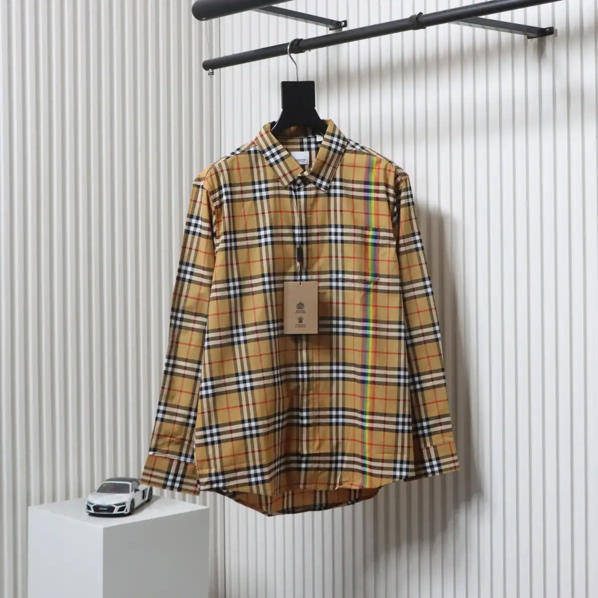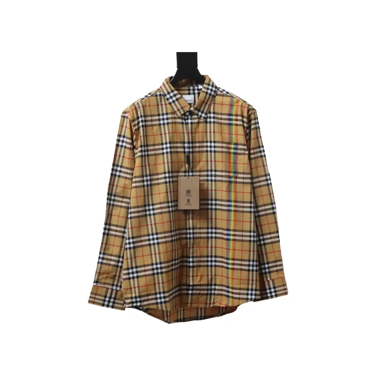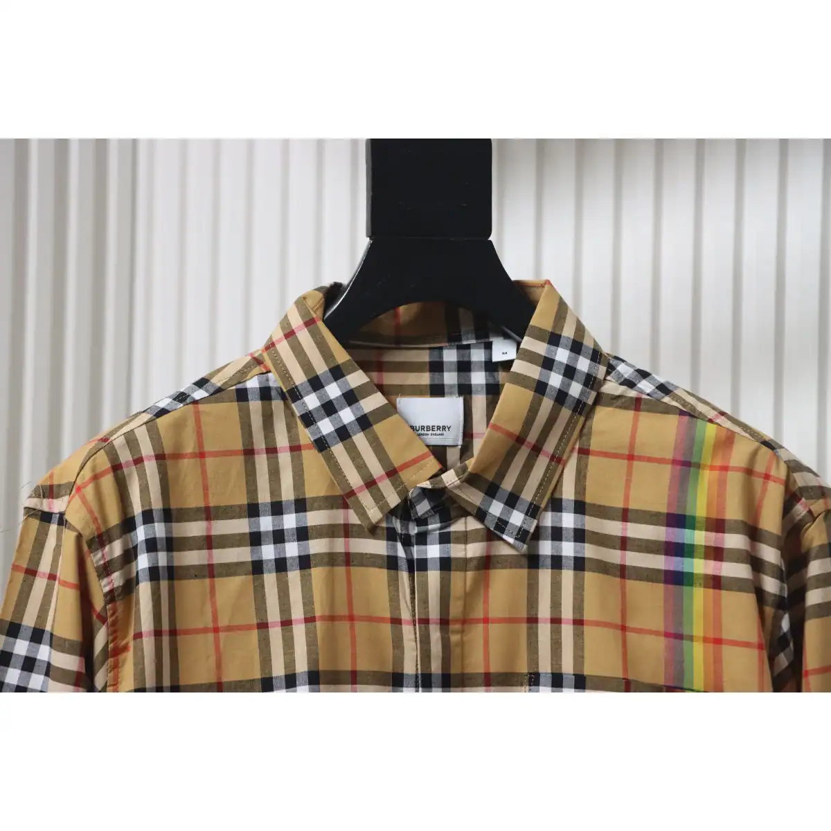 Burberry Tartan Motif Cotton Long Sleeve Shirt Neon Rainbow Stripes ; BRS035