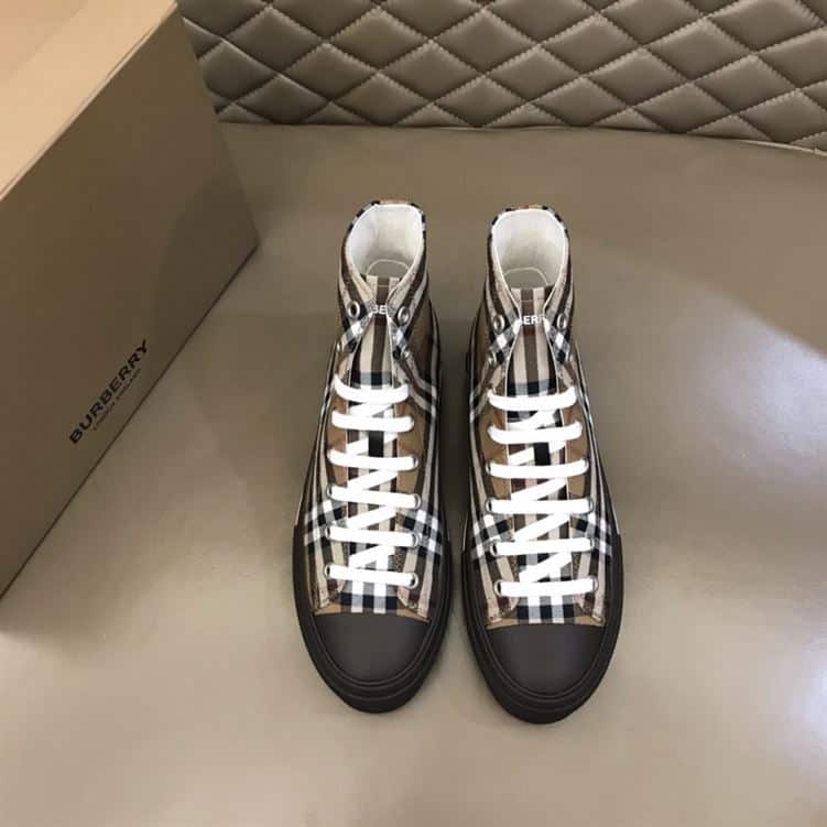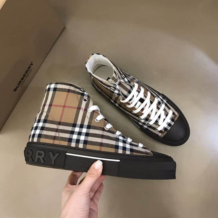 BURBERRY VINTAGE CHECK COTTON HIGH-TOP SNEAKERS – BBR027