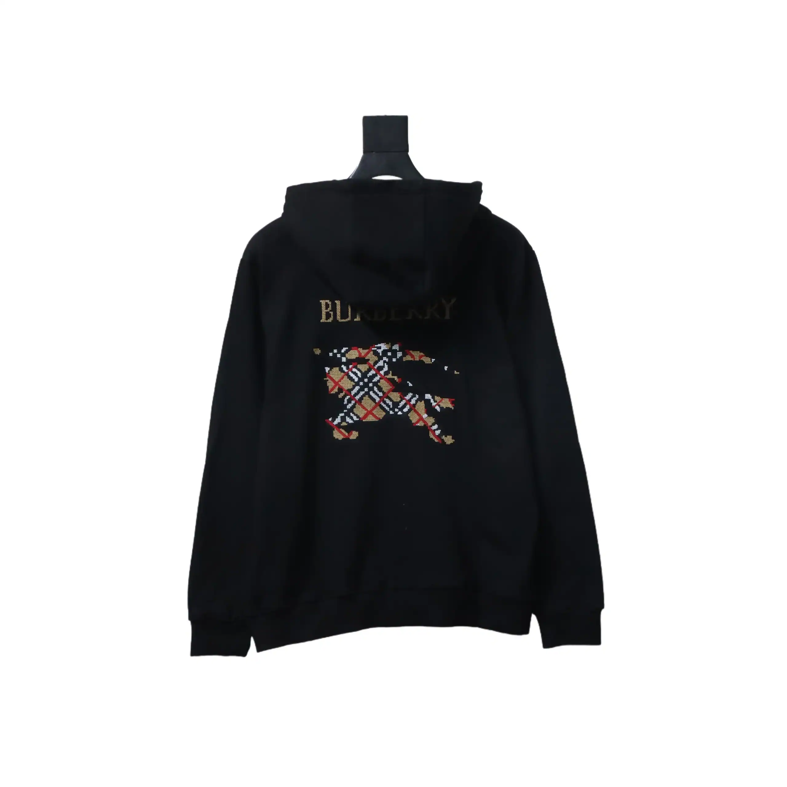 Burberry War Horse Cross-Stitch Print Zip-Up Hoodie Black ; BCK006