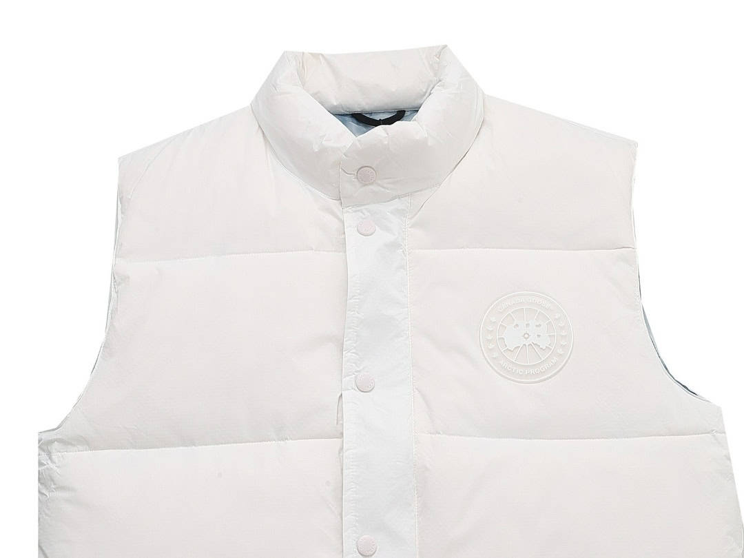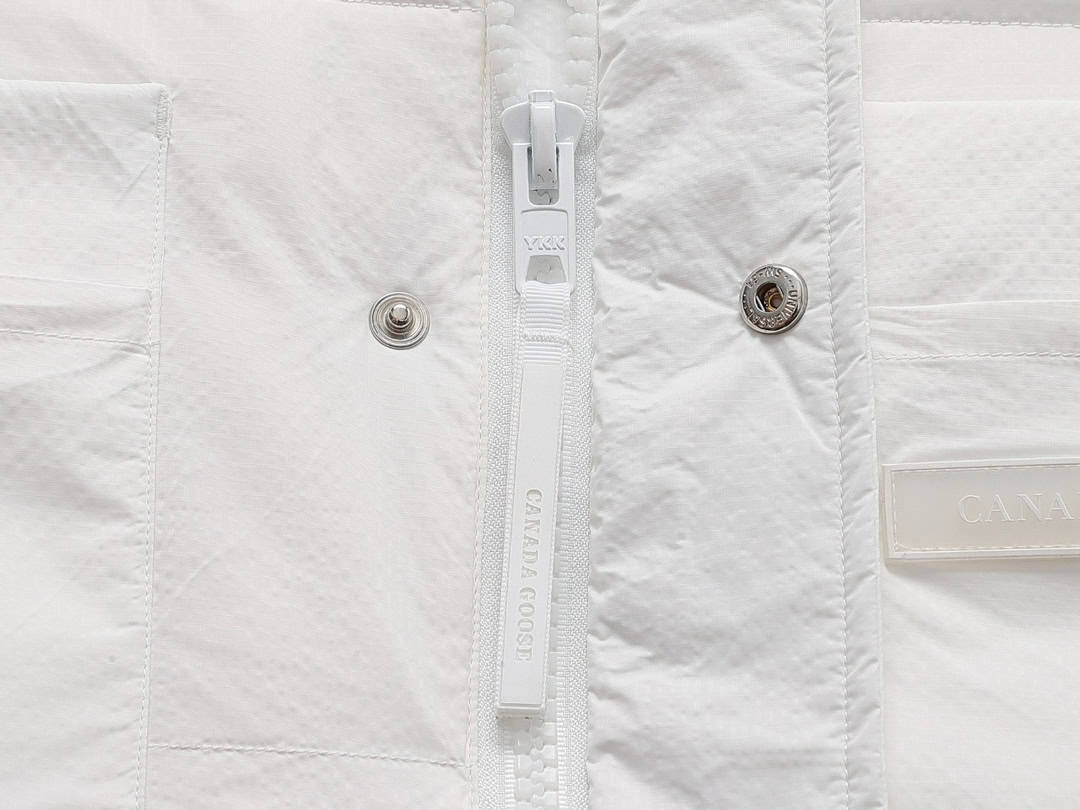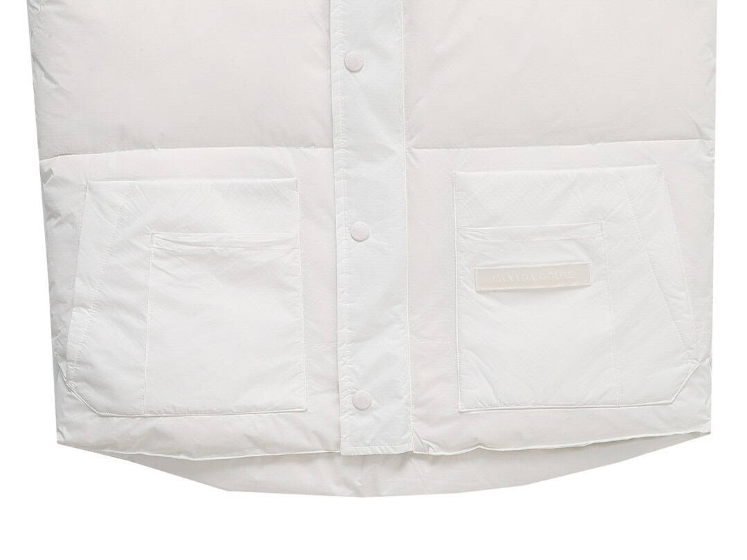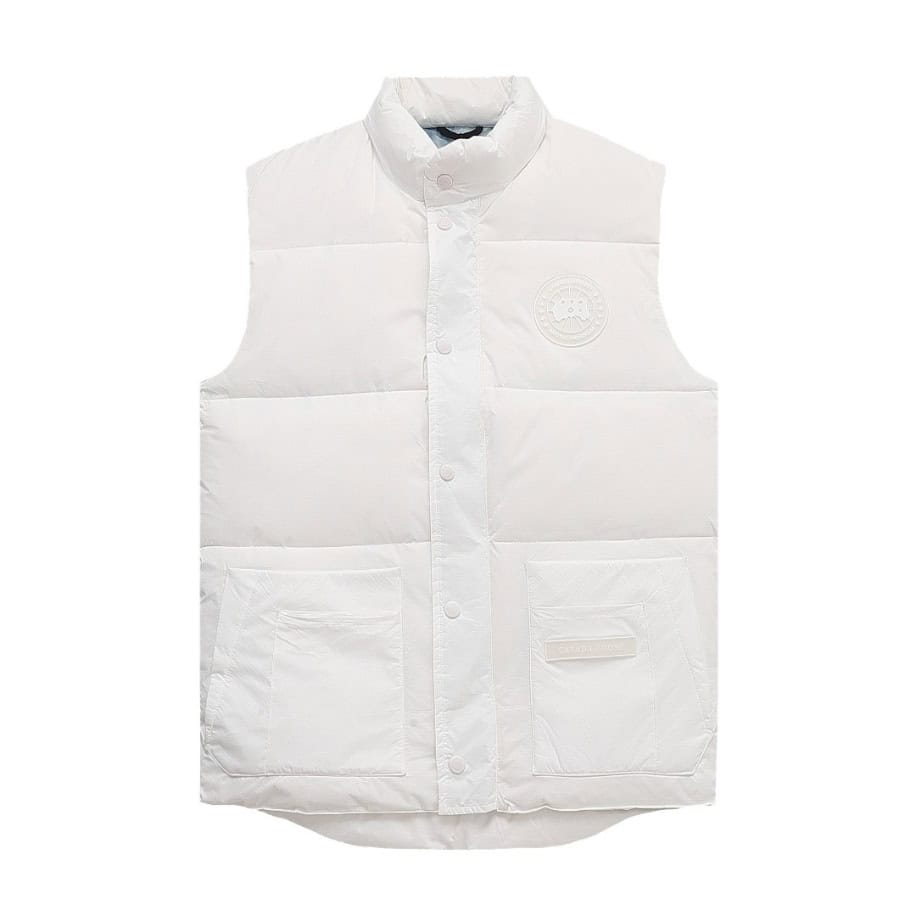 The Canada Goose White Vest ; CN33 is a stylish, high-performance piece designed for versatility and warmth. This vest features Canada Goose’s signature down insulation, which provides excellent warmth without added bulk, making it perfect for layering in colder weather.
