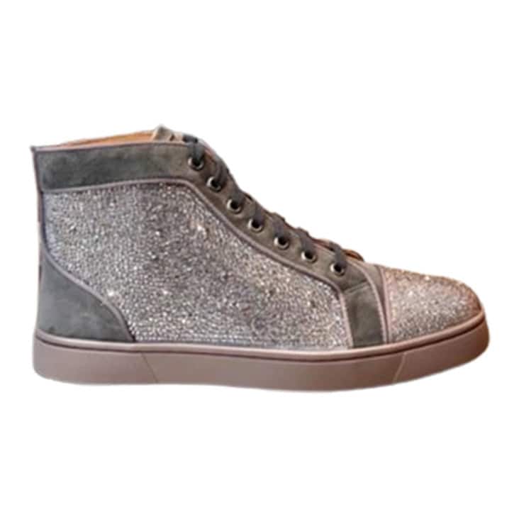 - The Christian Louboutin Grey Silver Sneaker embodies the brand’s luxe aesthetic with a contemporary edge, featuring a refined palette of grey tones accented by sleek silver details. This sneaker blends elegance with an urban twist, often incorporating high-quality materials like leather or suede and sometimes embellished with Louboutin’s signature studs or subtle metallic finishes for added dimension.