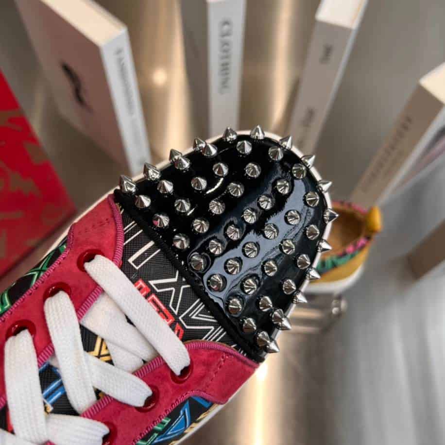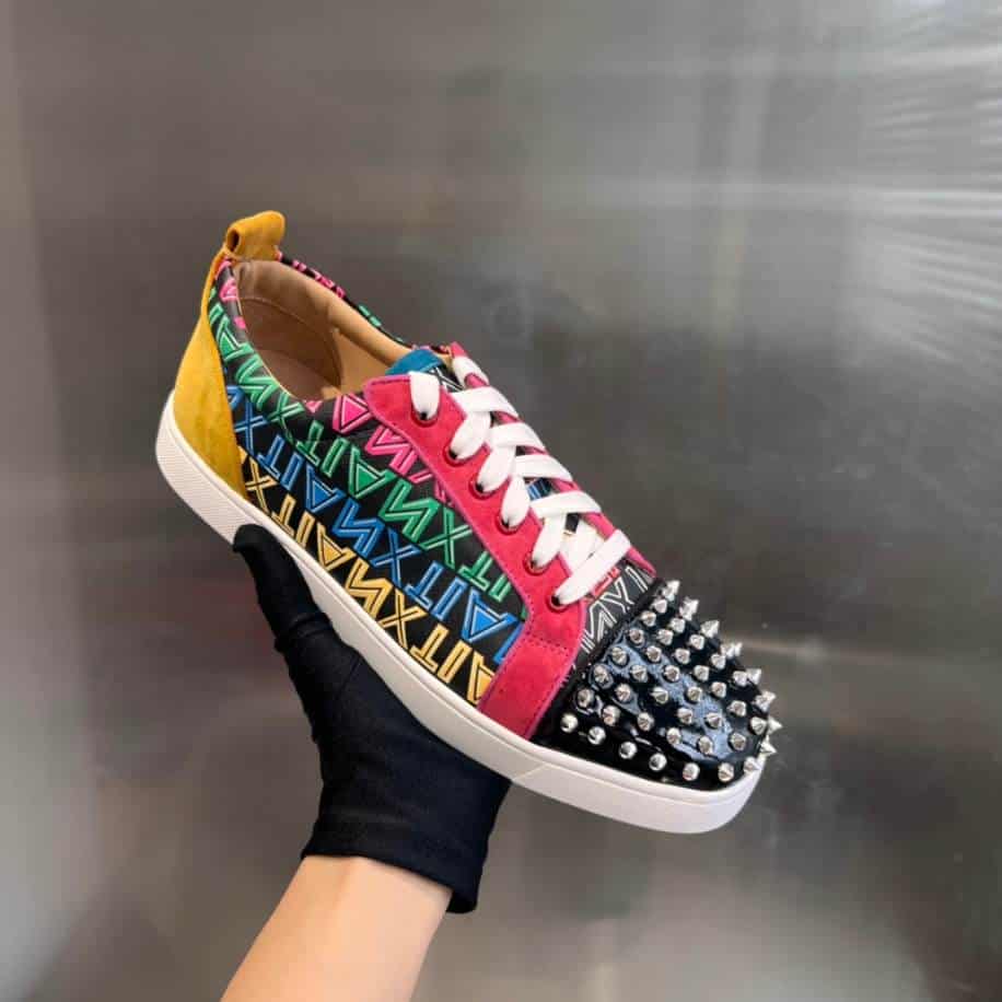 - Each panel combines different hues and textures, creating a dynamic, artful look that’s both stylish and unique. With the signature red sole adding a final mark of luxury, the Louis Junior Spikes Multicolor Sneaker is ideal for expressing bold personal style and bringing a splash of color to any outfit.