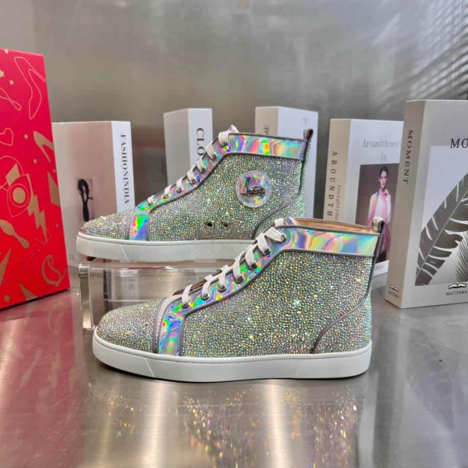 - Crafted from high-quality materials, the sneaker often features a sleek silhouette, combining elegance with urban edge. The addition of the iconic red sole provides a bold contrast, cementing its status as a high-fashion accessory. Perfect for elevating casual wear or adding glamour to evening looks, this sneaker is for those who embrace bold, luxurious style.