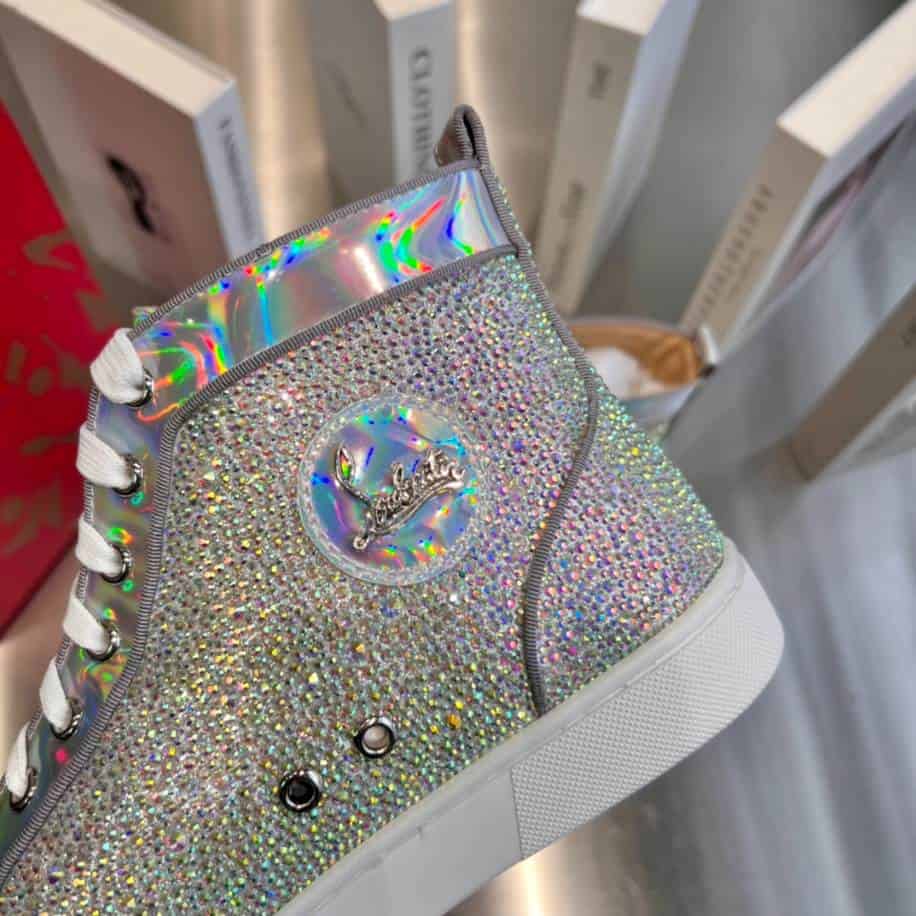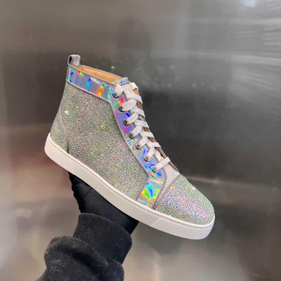 - The Christian Louboutin Silver Stones Sneaker is a dazzling, statement-making piece that epitomizes luxury with its sparkling, stone-studded design. Covered in glistening silver stones, this sneaker captures attention with its reflective shimmer and intricate detailing, making it a true standout in any wardrobe.