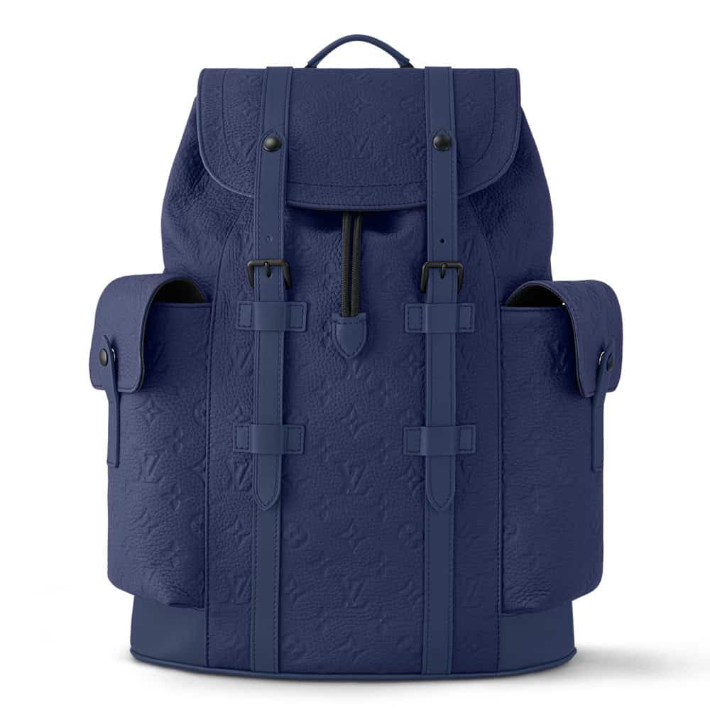 - The Christopher MM Backpack Blue Monogram Taurillon Leather is a bold and refined statement piece. Crafted from premium Taurillon leather in a striking blue hue, it features an embossed monogram pattern for a luxurious touch. The spacious design, adjustable shoulder straps, and secure buckle closures offer both style and practicality. Perfect for elevating everyday looks with sophistication and functionality.