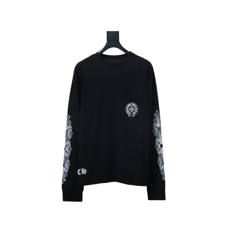 Chrome Hearts 25FW Front and Back Horseshoe Pprint Long Sleeve Black ; CHK009