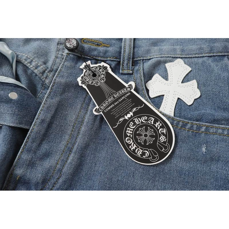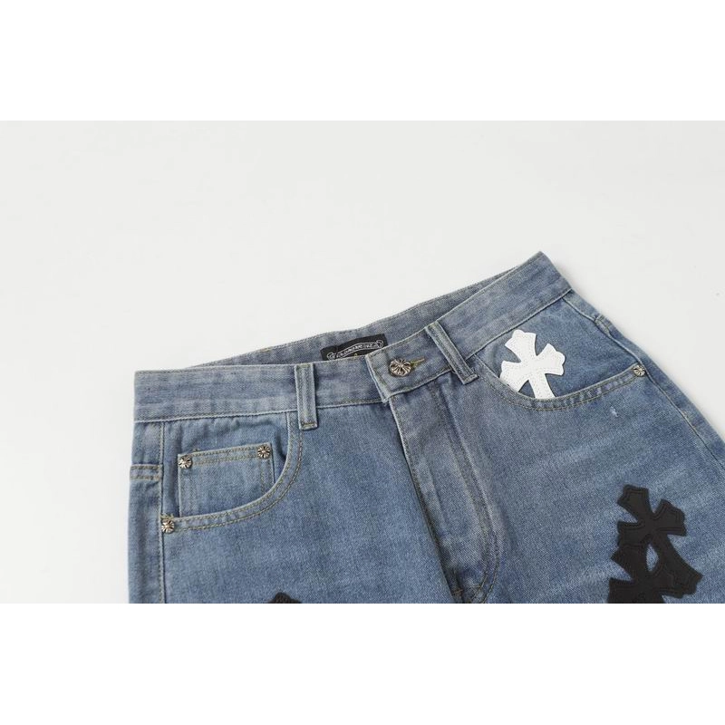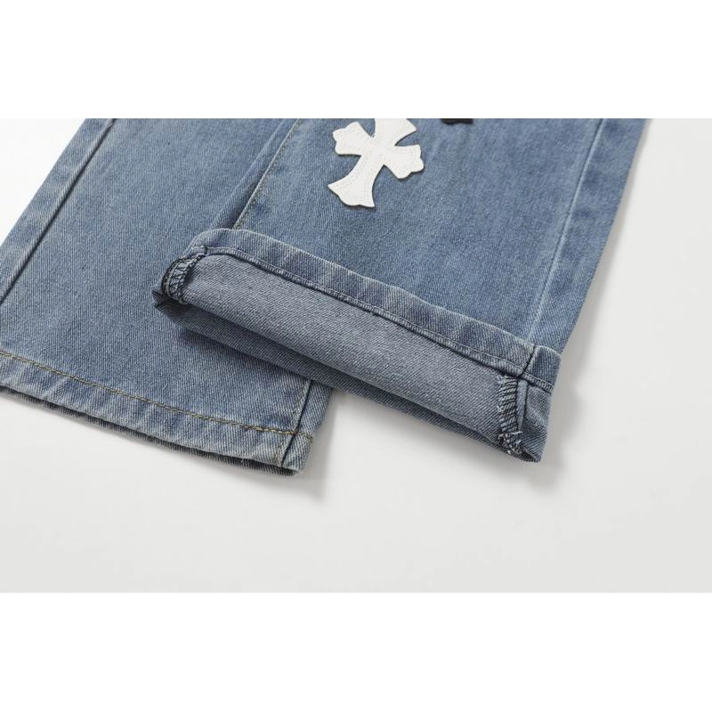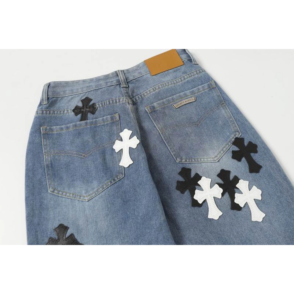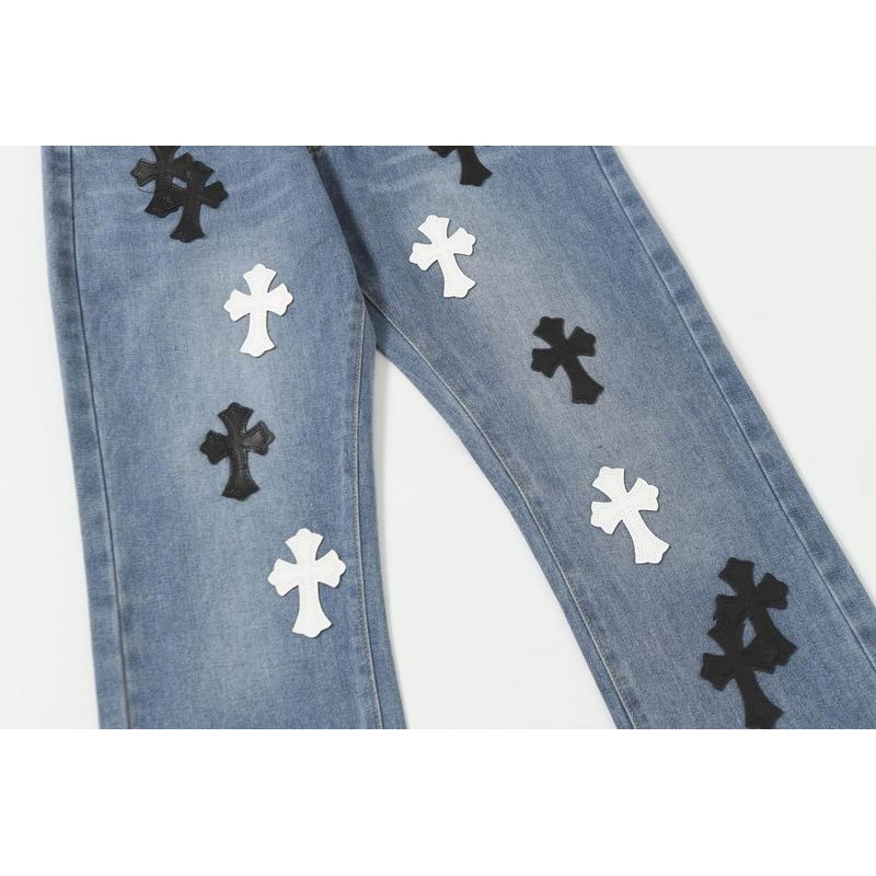 Chrome Hearts Black and White Cross-patterned Jeans Blue ; CHJ010