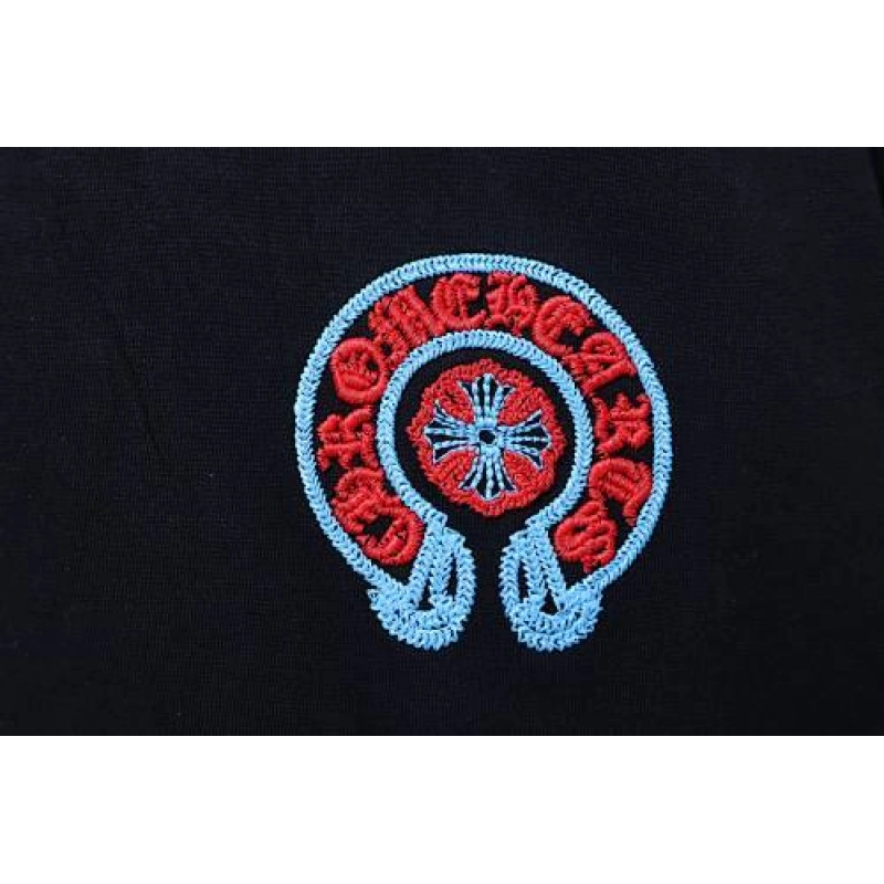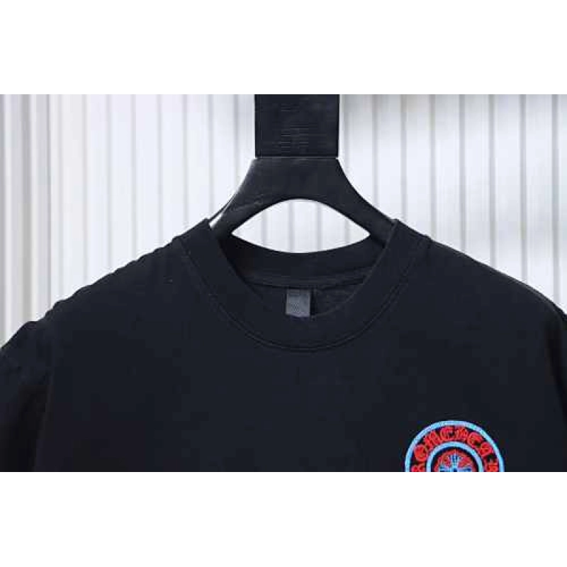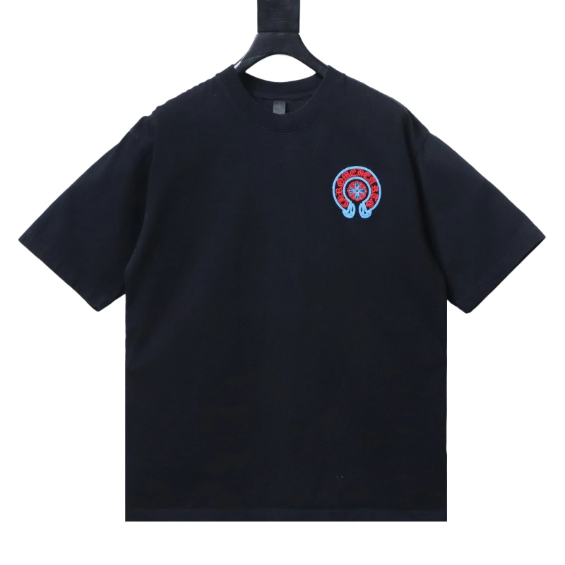 Chrome Hearts Blue-Trim Horseshoe Cross T-Shirt Black ; CHS105