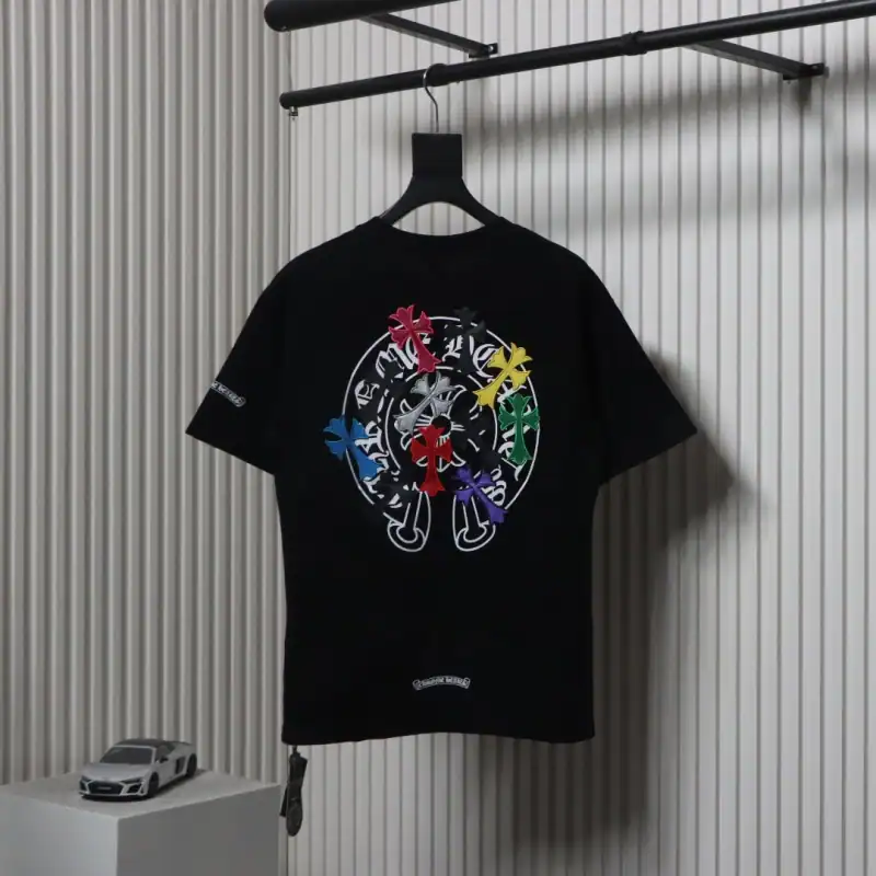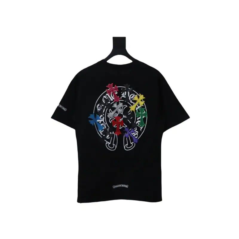 Chrome Hearts CH Colorful Leather Cross T-shirt Black ; CHS003