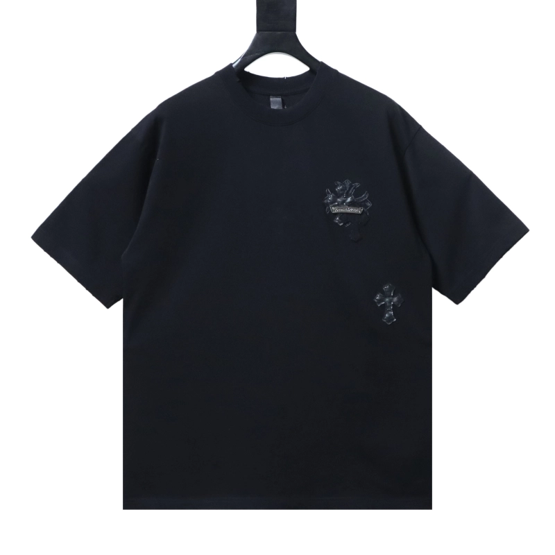 Chrome Hearts Cross Leather Patch & Tape Logo T-Shirt Black ; CHS111