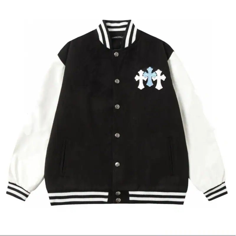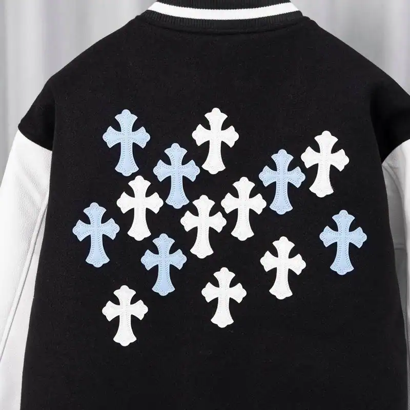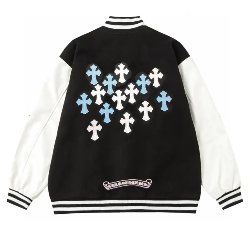 Chrome Hearts Embroidered Blue and White Cross Baseball Jacket (Black and White) ; CHC005