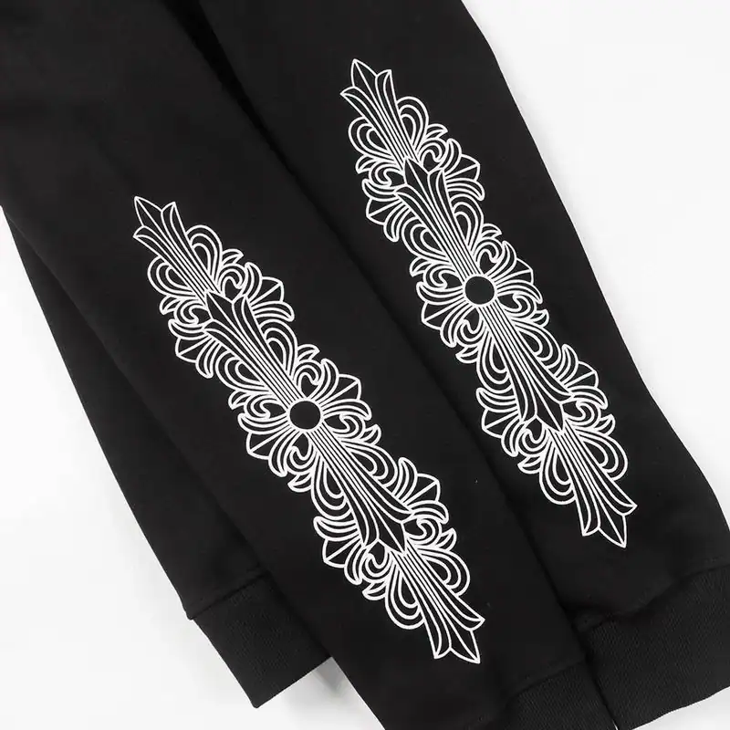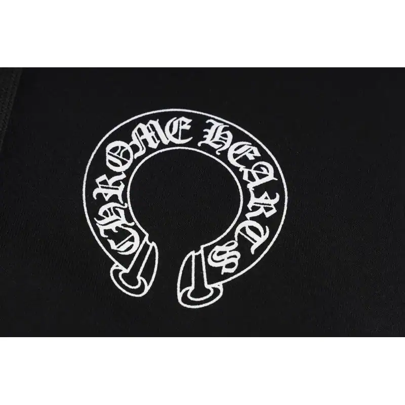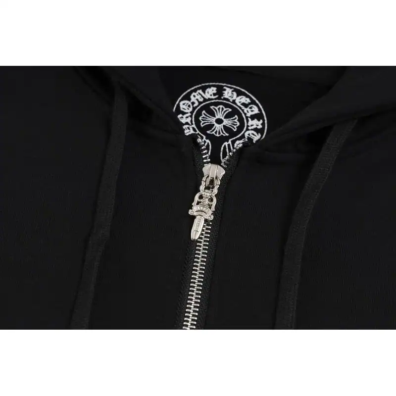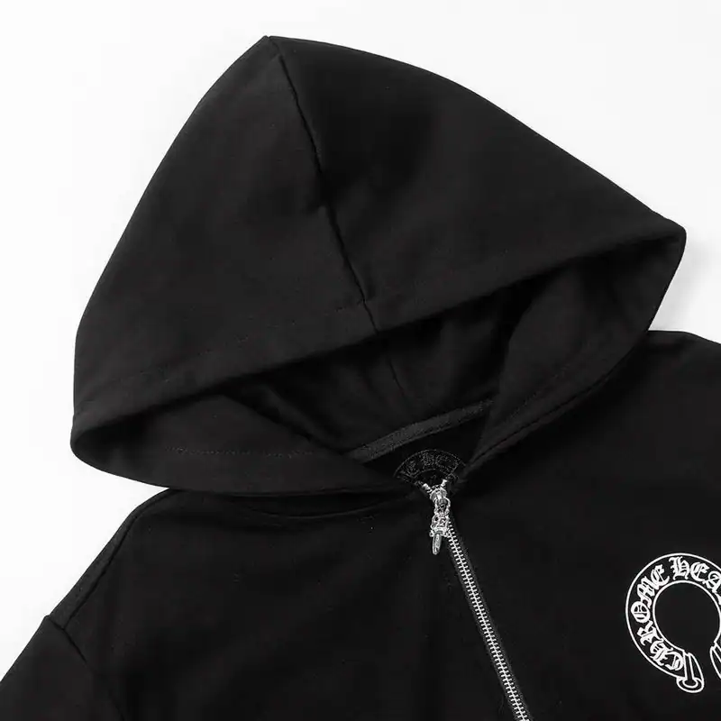 Chrome Hearts Horseshoe Floral Cross-Sleeve Zip Up Hoodie Black White ; CHK003