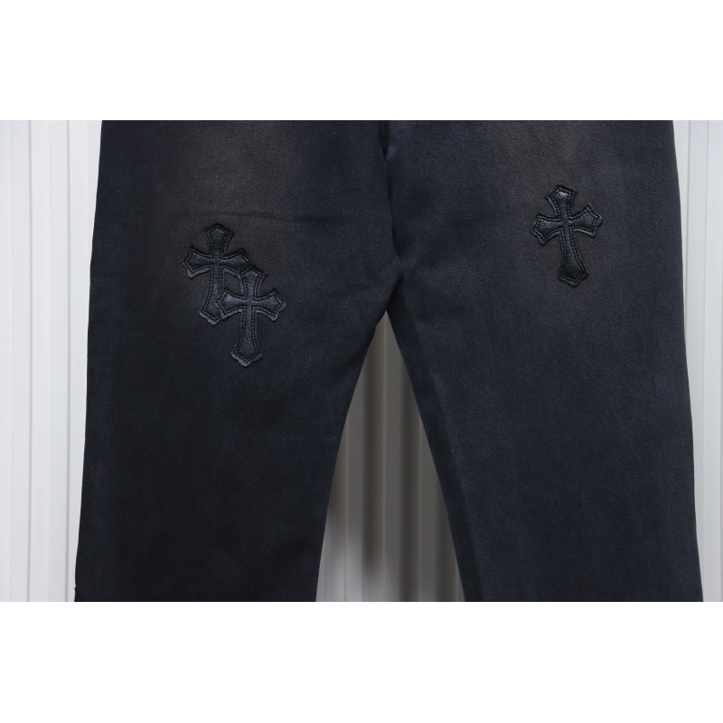 Chrome Hearts Leather Black Cross Jeans ; CHJ019