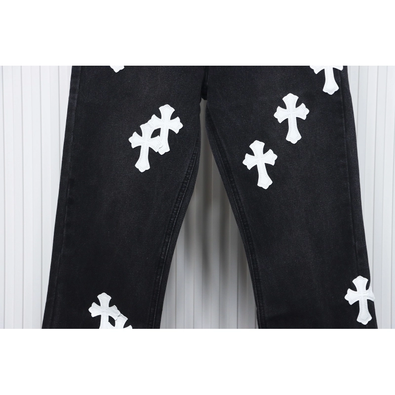 Chrome Hearts Leather White Cross Jeans ; CHJ030