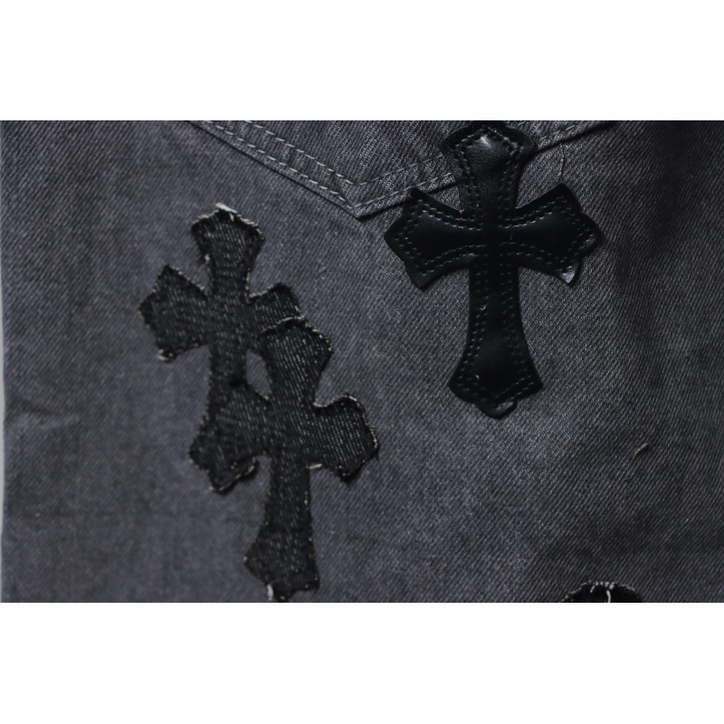 Chrome Hearts Ox King City Limited Edition Cross Metallic Leather Jeans Dark Gray ; CHJ015