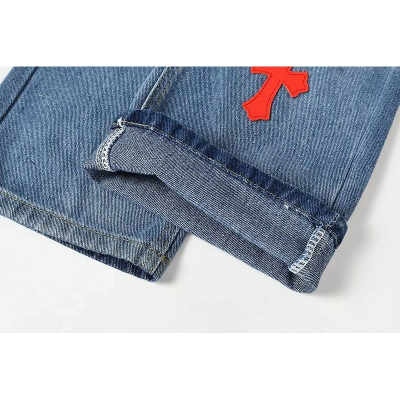 Chrome Hearts Red and White Cross-patterned Jeans with Sanskrit on the Back ; CHJ017