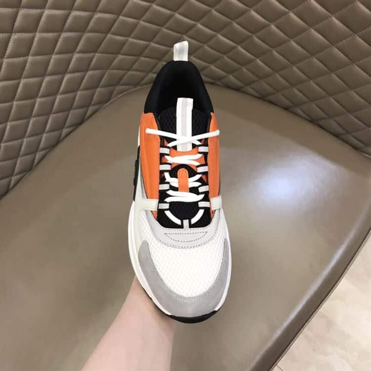 DIOR B22 SNEAKERS BLACK AND WHITE TECHNICAL MESH WITH ORANGE AND WHITE SMOOTH CALFSKIN – DO003
