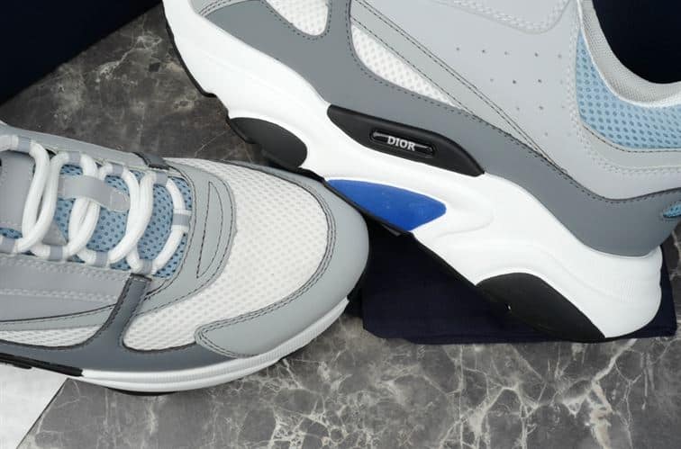 DIOR B22 SNEAKERS WHITE AND BLUE TECHNICAL MESH AND GRAY CALFSKIN – DO001