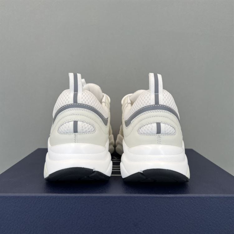 DIOR B22 SNEAKERS WHITE TECHNICAL MESH WITH WHITE AND SILVER-TONE CALFSKIN – DO002