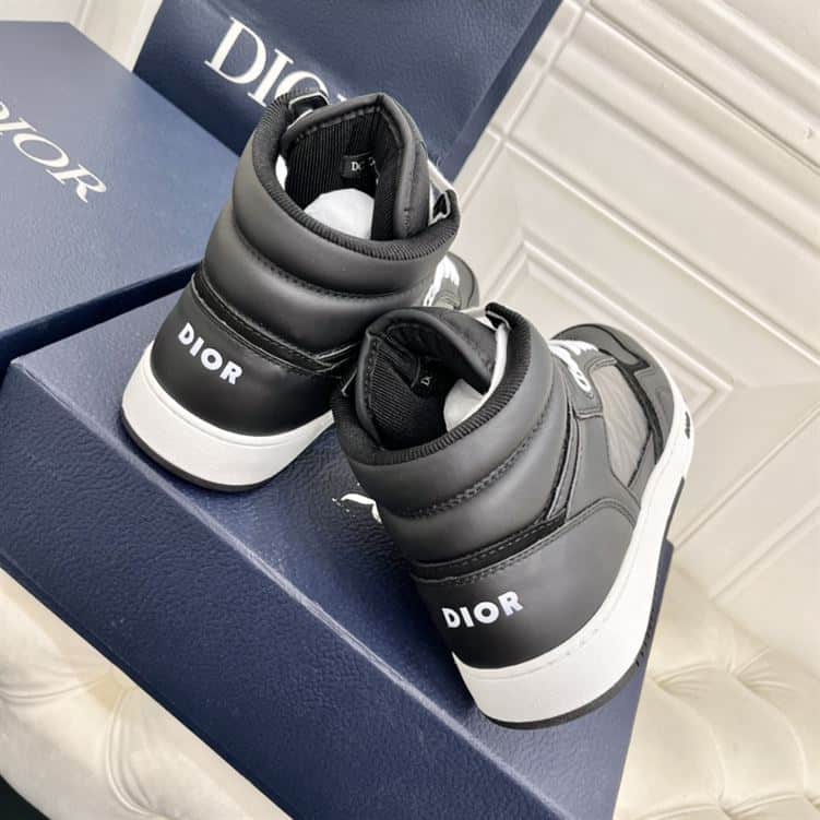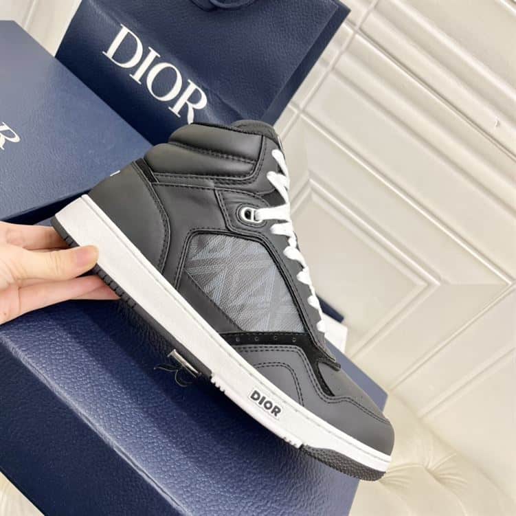 DIOR B27 HIGH-TOP SNEAKER BLACK SMOOTH CALFSKIN AND CD DIAMOND CANVAS – DO142