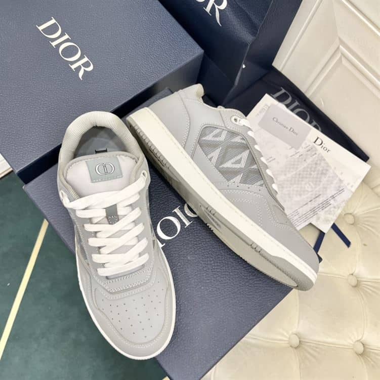 DIOR B27 LOW-TOP SNEAKER GRAY SMOOTH CALFSKIN AND CD DIAMOND CANVAS – DO139