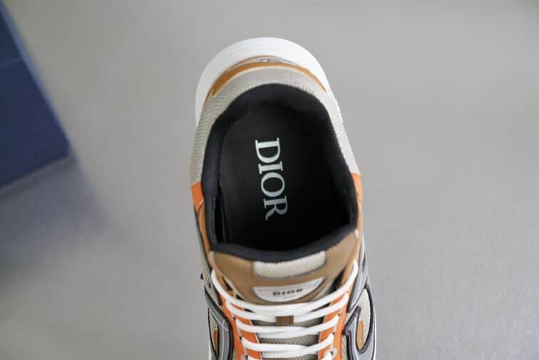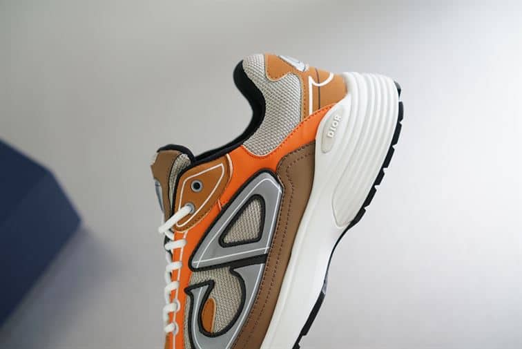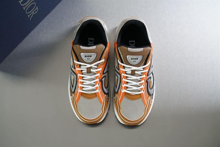 DIOR B30 SNEAKER CREAM MESH WITH ORANGE AND BROWN TECHNICAL FABRIC – DO072