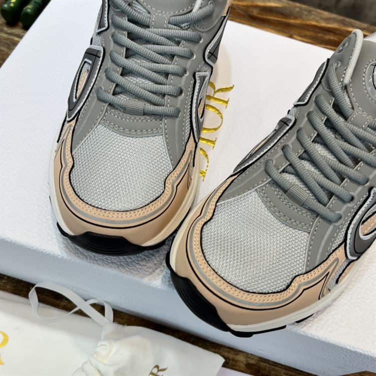 DIOR B30 SNEAKER GRAY MESH AND LIGHT PINK AND GRAY TECHNICAL FABRIC – DO058
