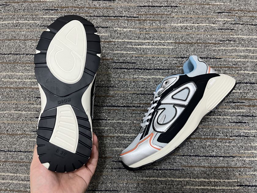 DIOR B30 SNEAKER GRAY MESH WITH SILVER-TONE AND DEEP GRAY TECHNICAL FABRIC – DO107