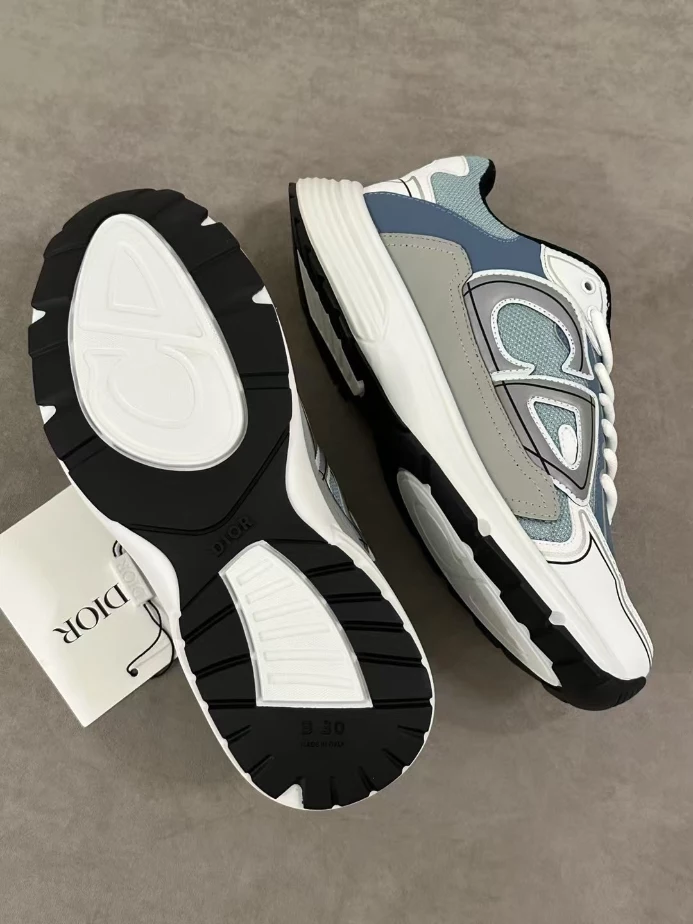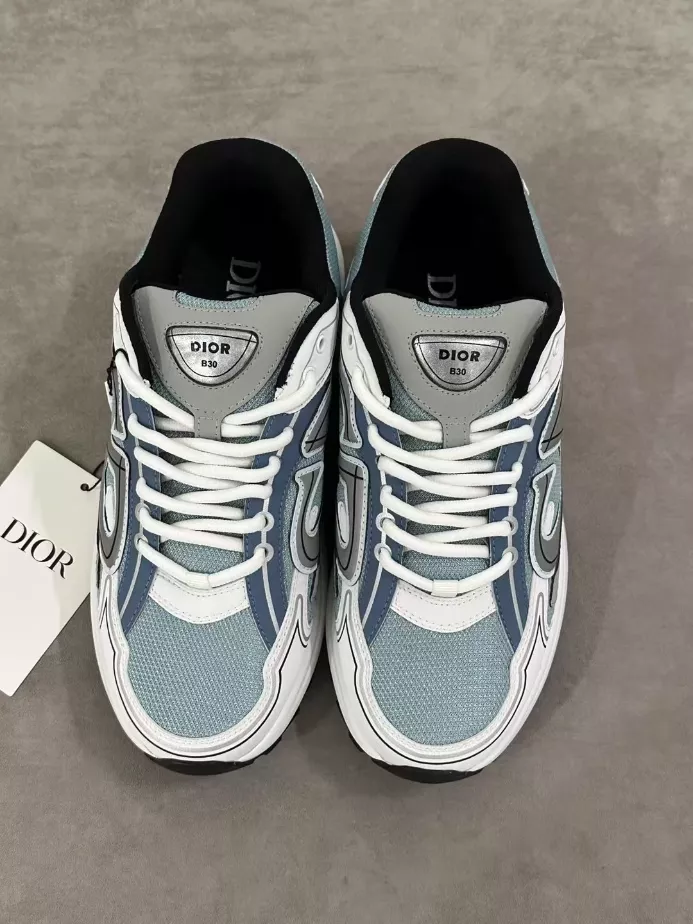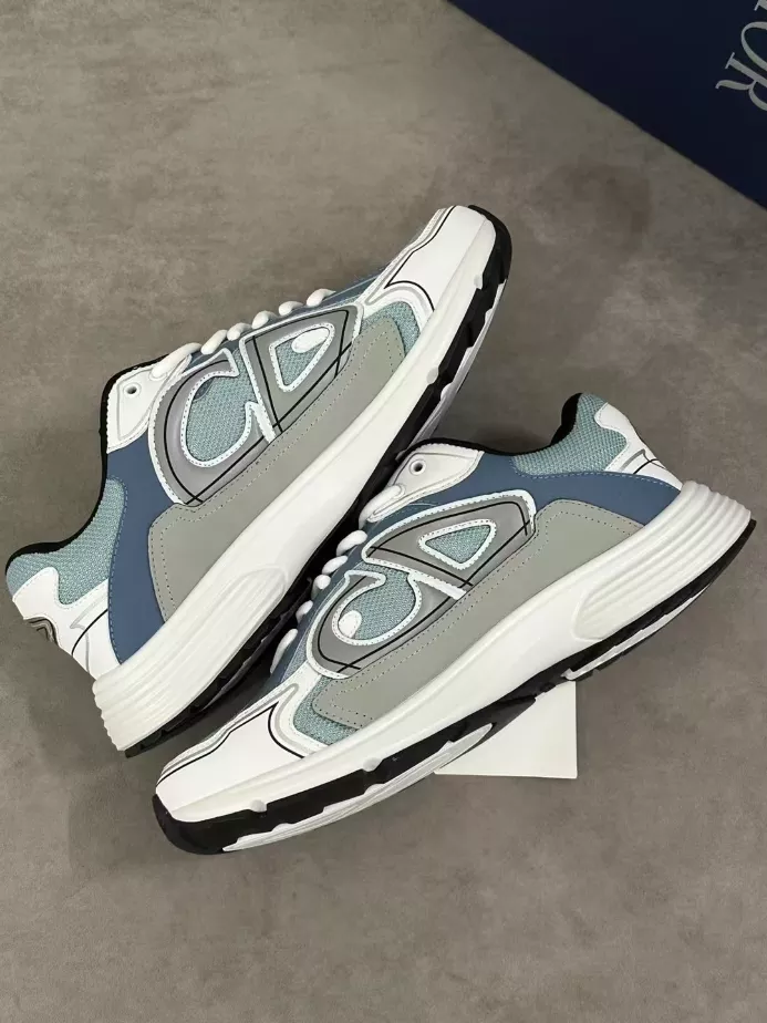 DIOR B30 SNEAKER LIGHT BLUE MESH AND BLUE GRAY AND WHITE TECHNICAL FABRIC ; DO0206